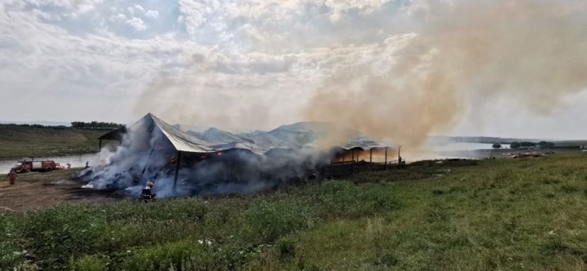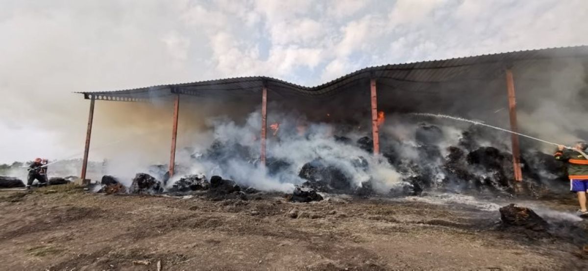 Intervenția este una de durată având în vedere ca arde o cantitate mare de furaje.