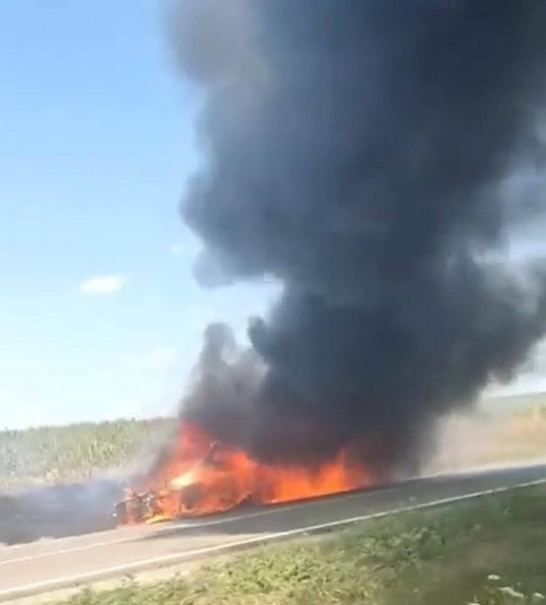 O mașină a ars ca o torță pe drumul Botoșani-Săveni.