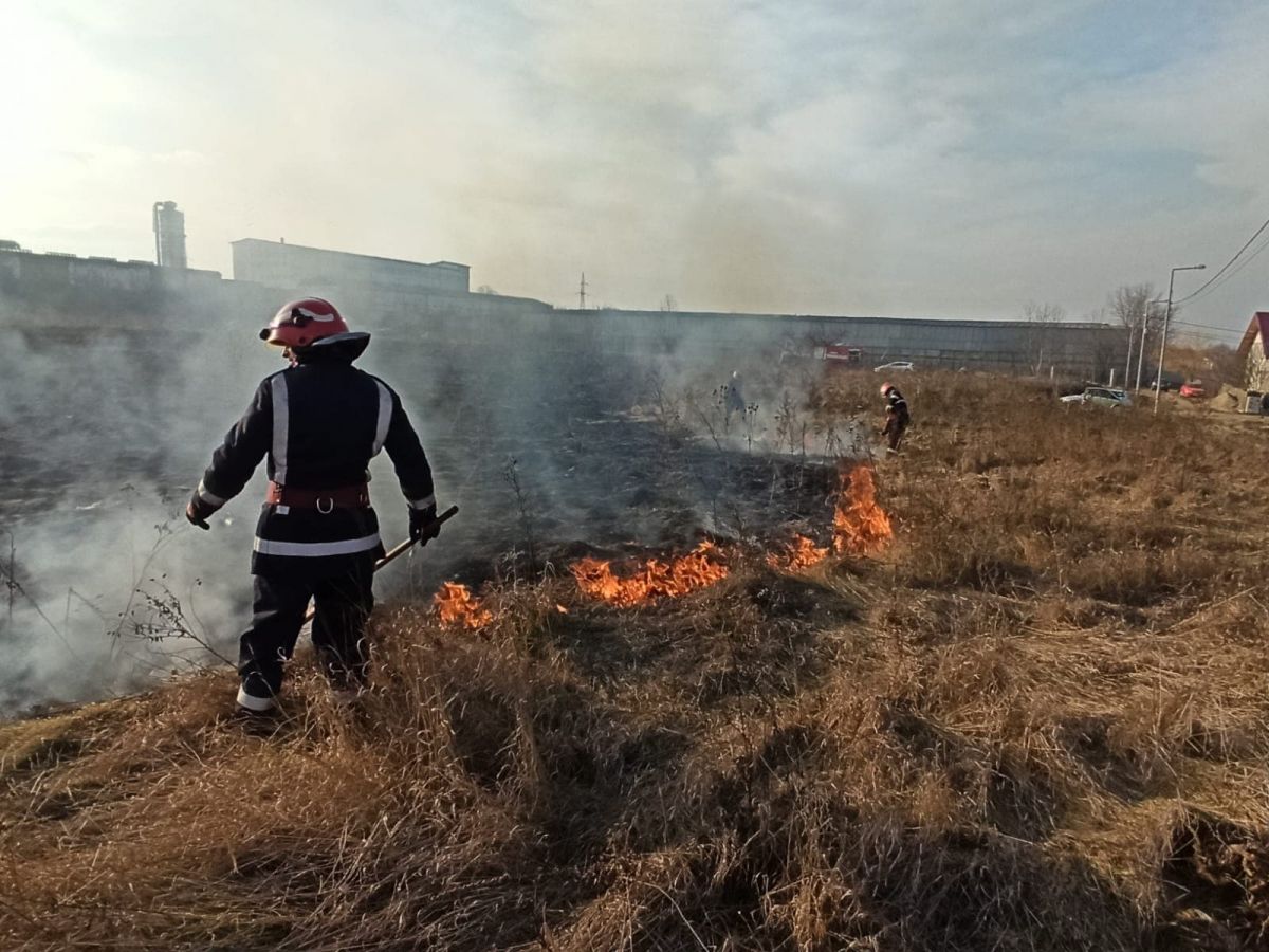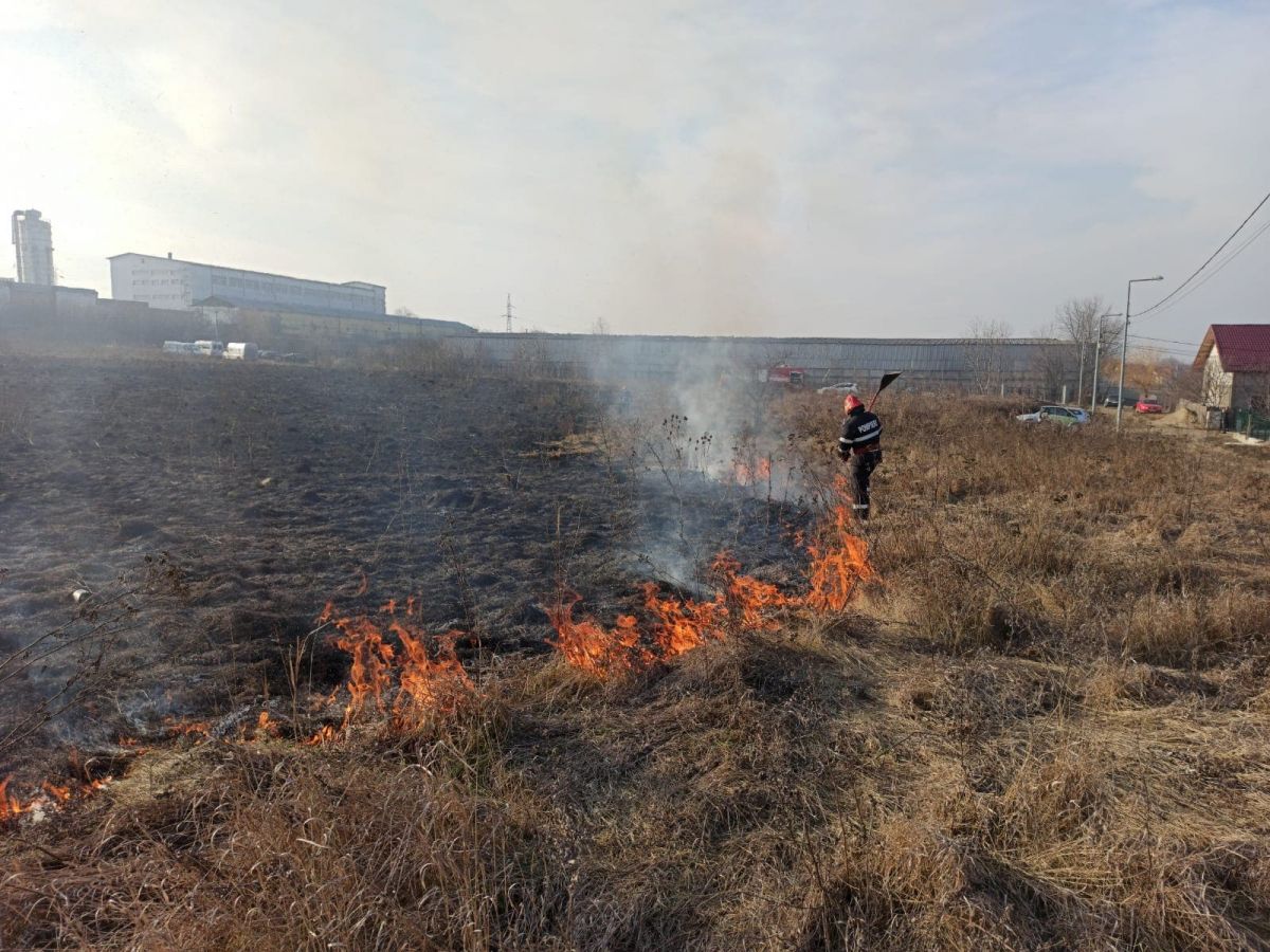 Vegetația care a aluat foc este pe un teren nefolosit.