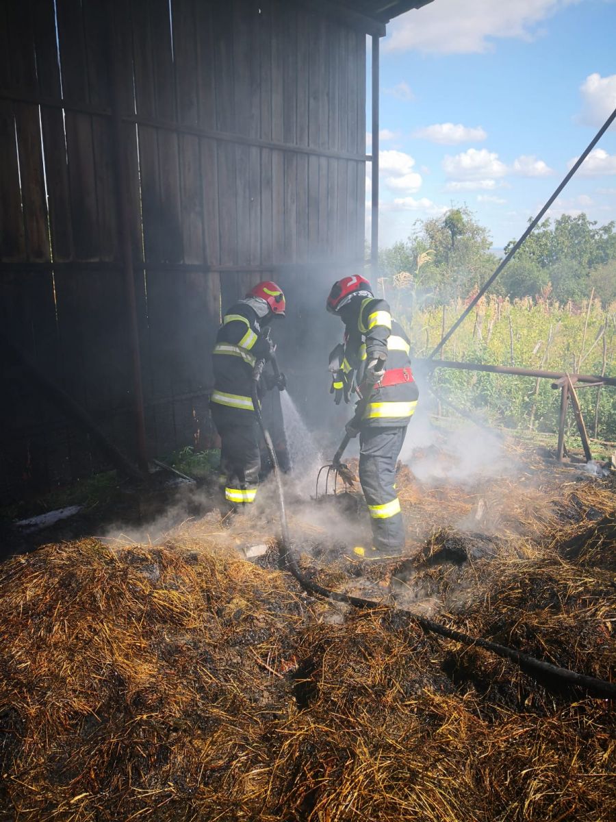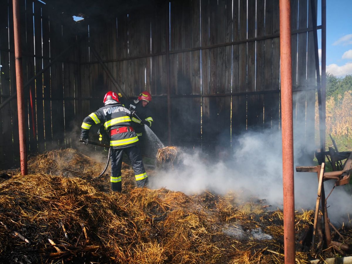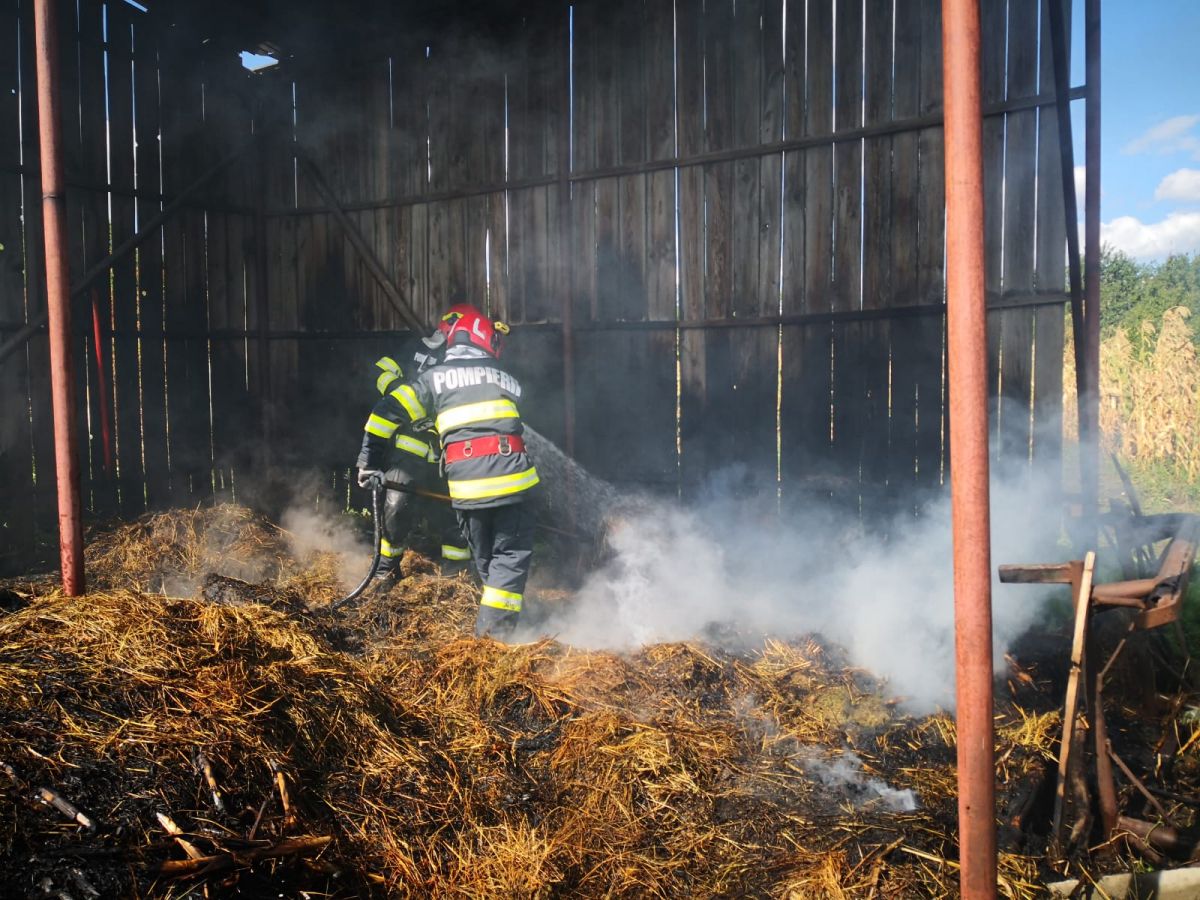 Din această cauză, depozitul de furaje dintr-o gospodărie din localitatea Șendreni, a fost cuprins de flăcări.