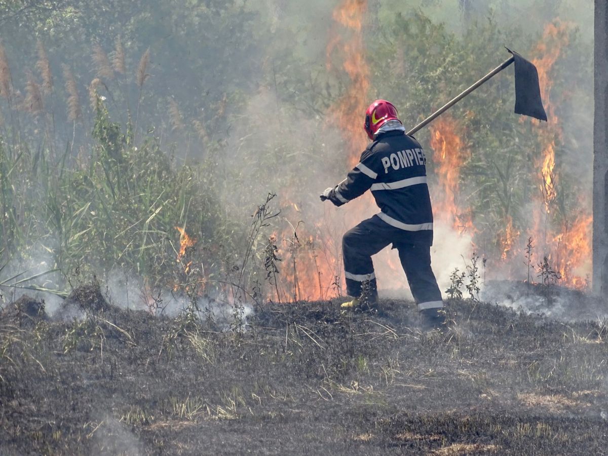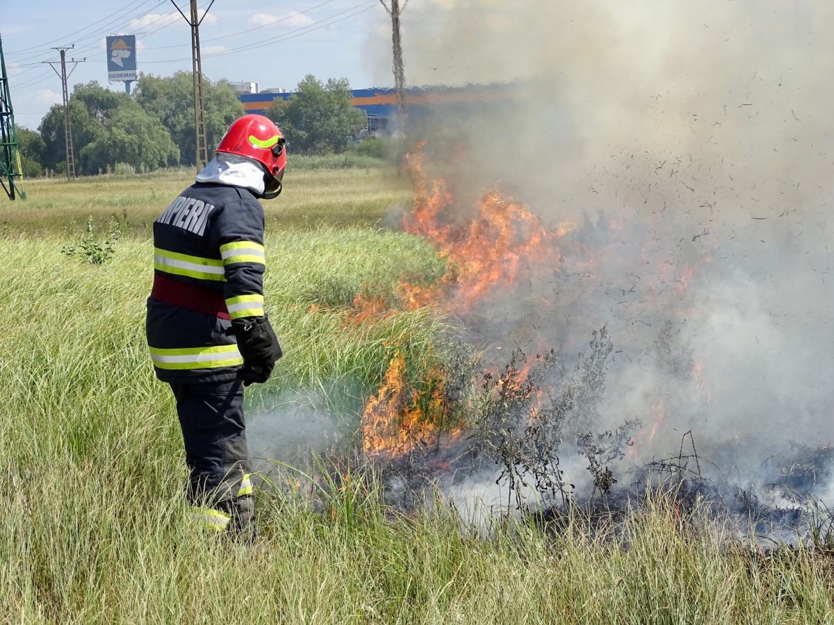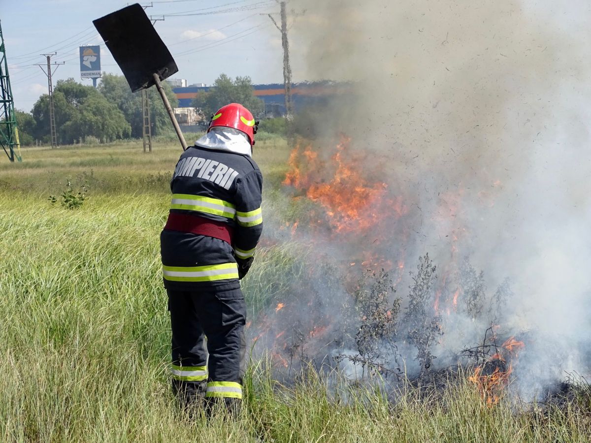 Au fost solicitați pentru un incendiu de vegetație uscată care se extinde cu repeziciune, flăcările fiind întreținute și de vânt.