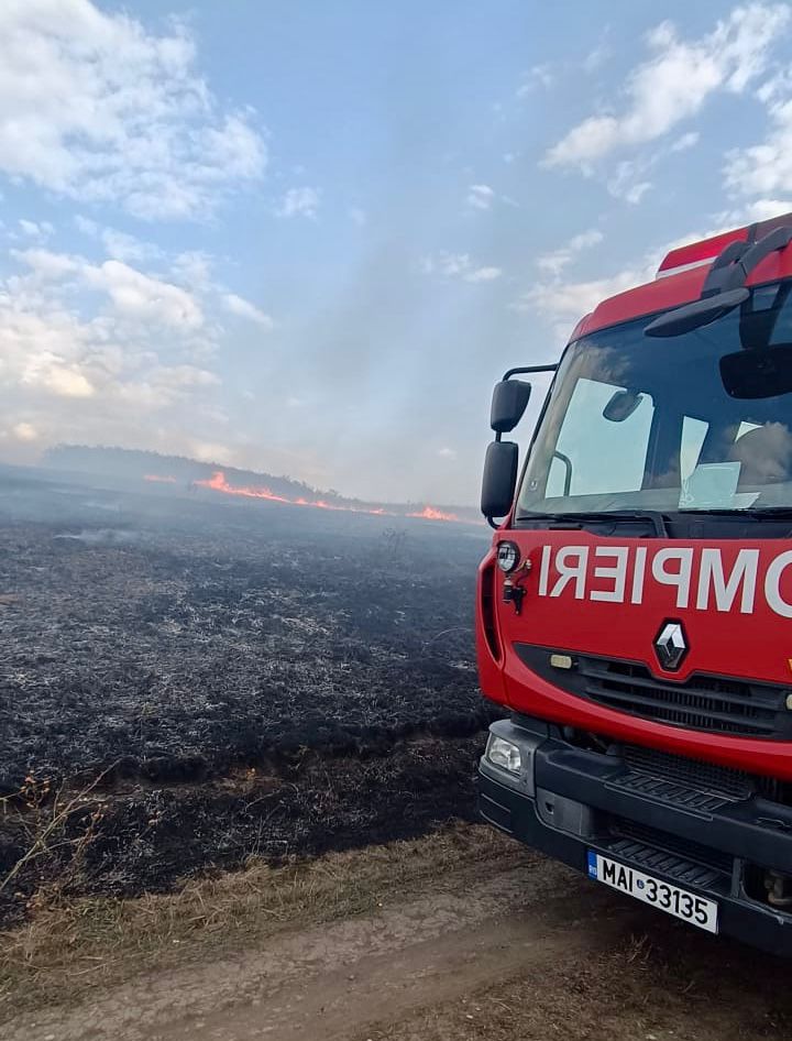 Pompierii au reușit să limiteze extinderea focului la o cultură de porumb și una de floarea soarelui.
