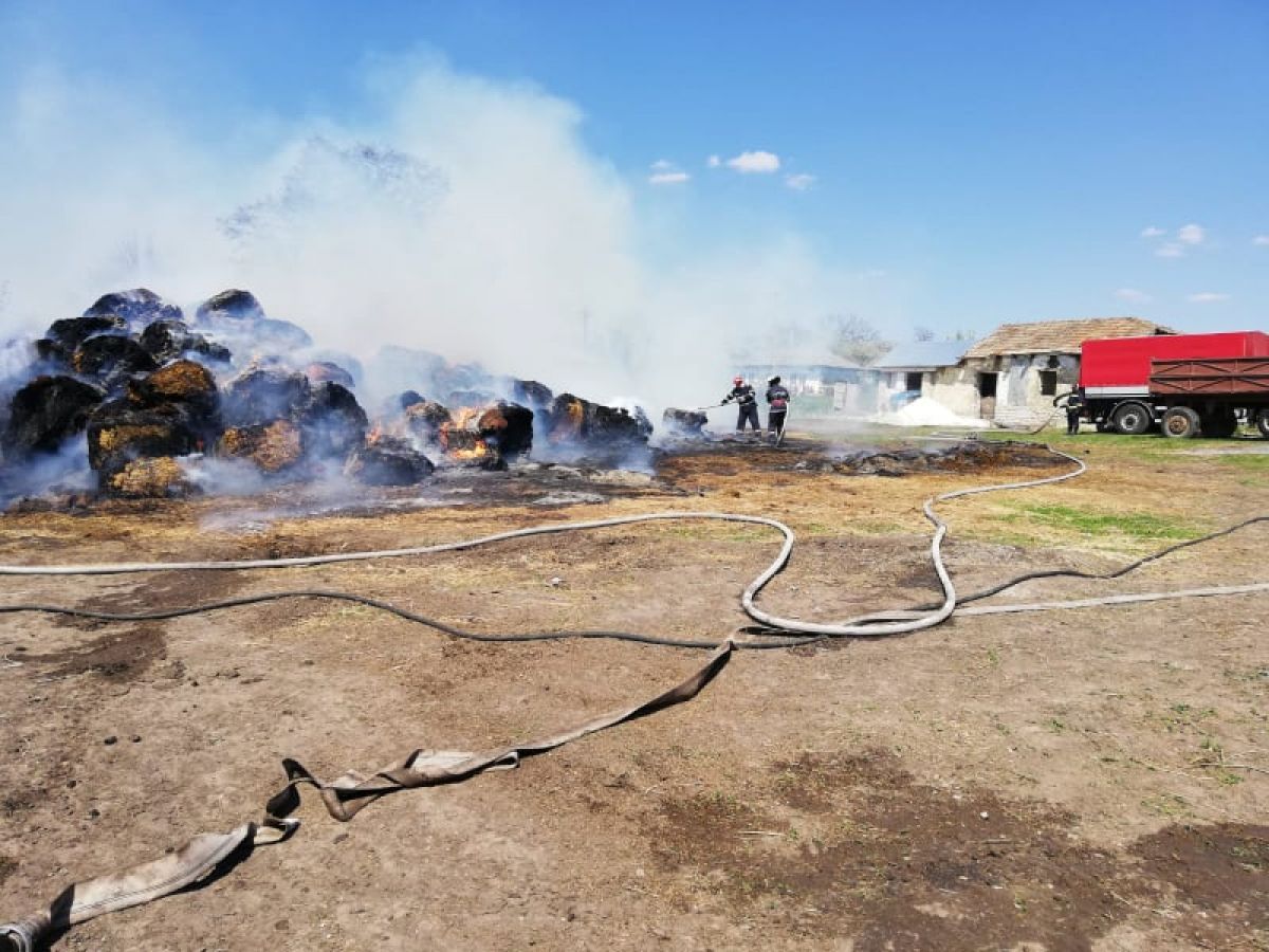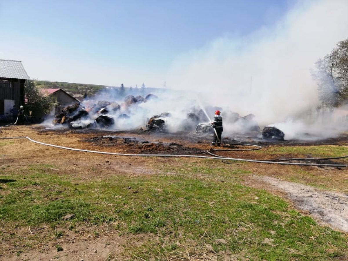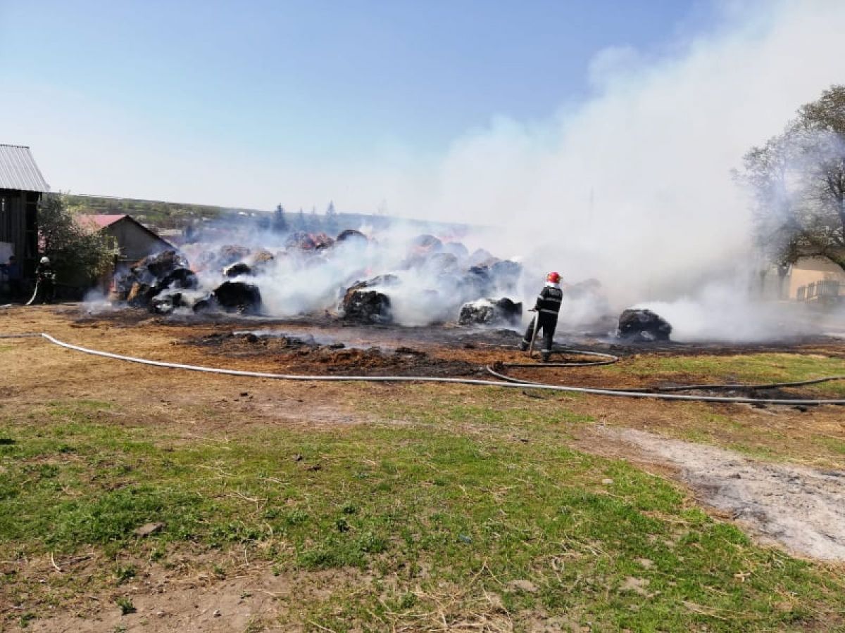 Ard circa 200 de baloţi de furaje. La fața locului intervin pompierii militari de la Săveni şi Botoșani, precum si voluntarii din comună, cu patru autospeciale cu apa si spuma.
