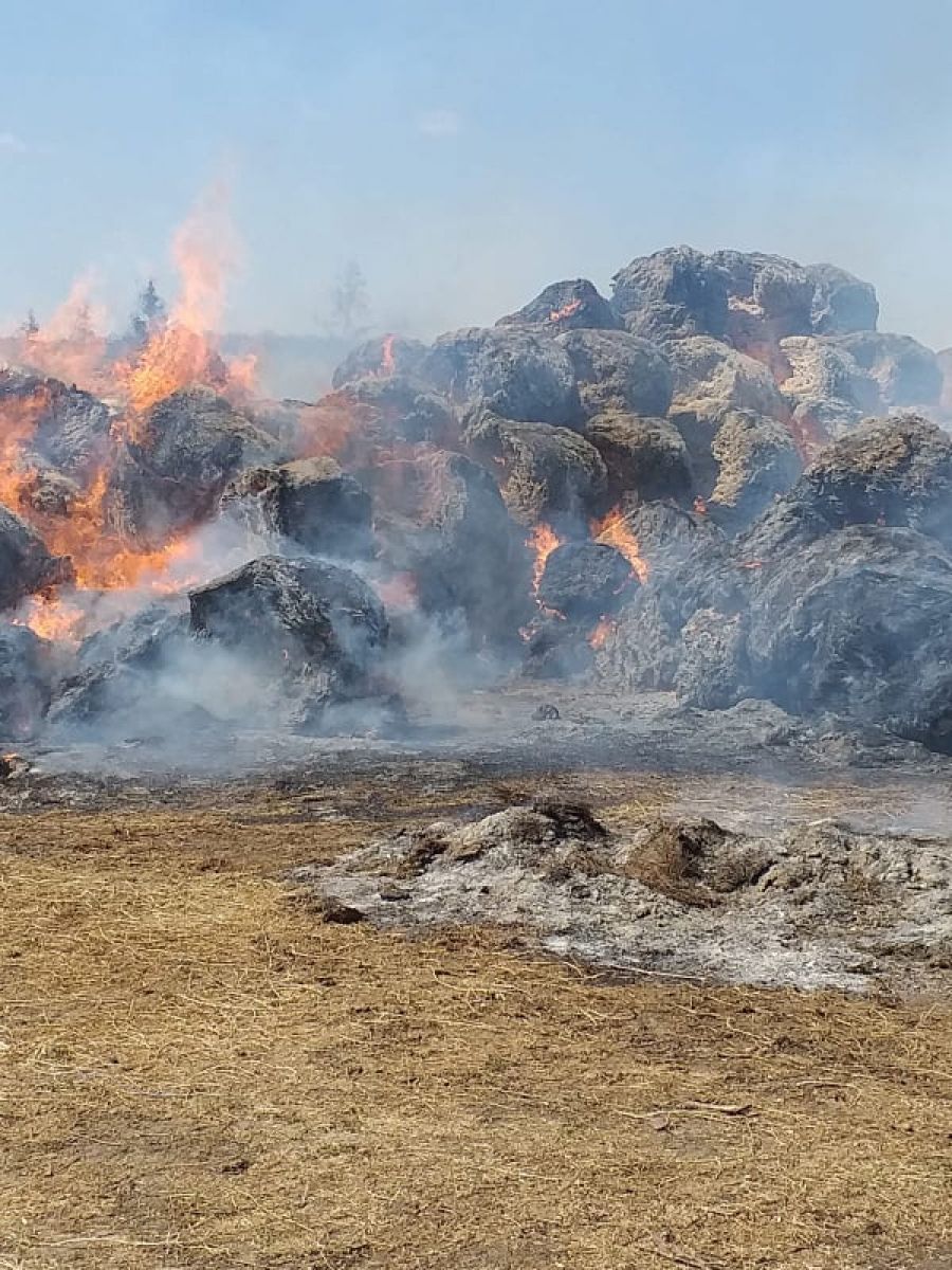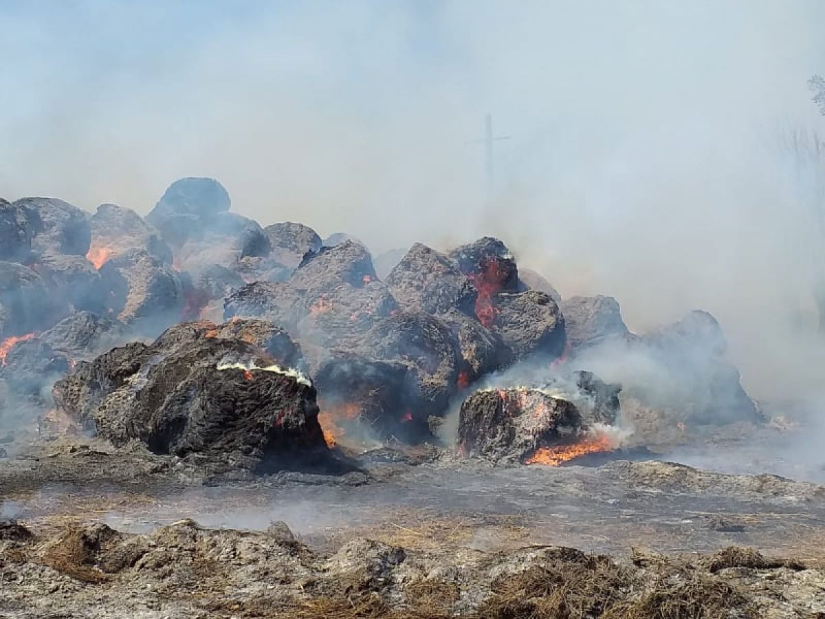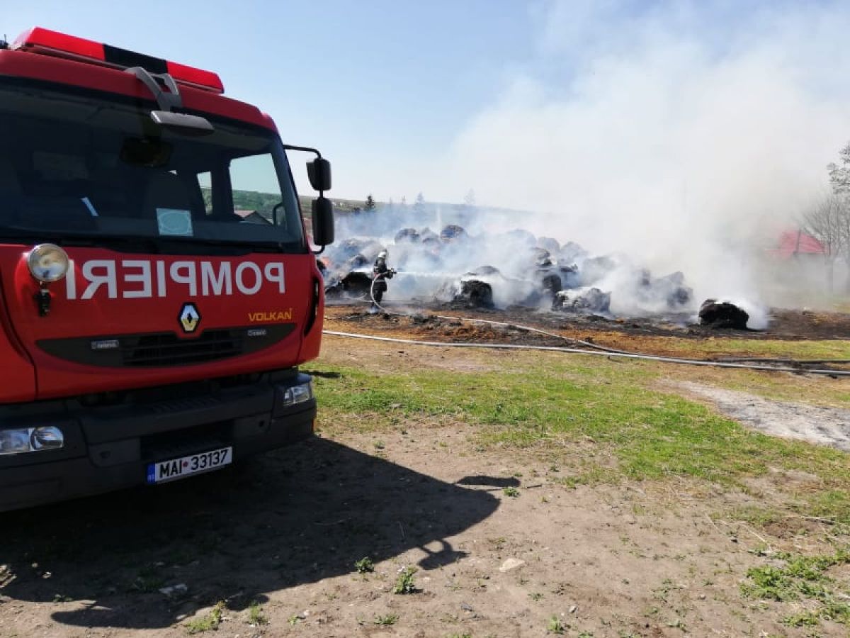 Ard circa 200 de baloţi de furaje. La fața locului intervin pompierii militari de la Săveni şi Botoșani, precum si voluntarii din comună, cu patru autospeciale cu apa si spuma.