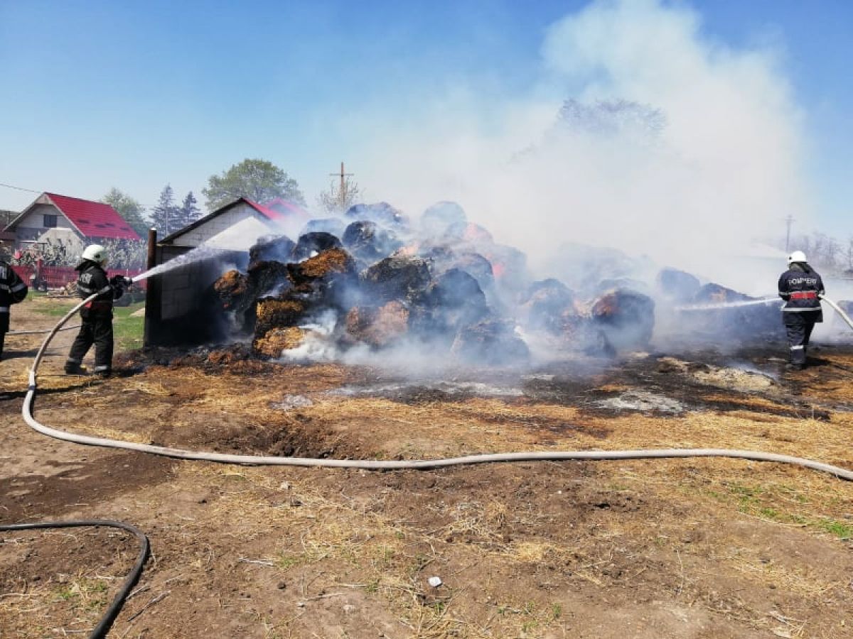 La sosirea forțelor de intervenţie, ardeau furajele si exista pericol de propagare a flăcările la un depozit de cereale, precum si alte clădiri din apropiere. Incendiul este localizat.
