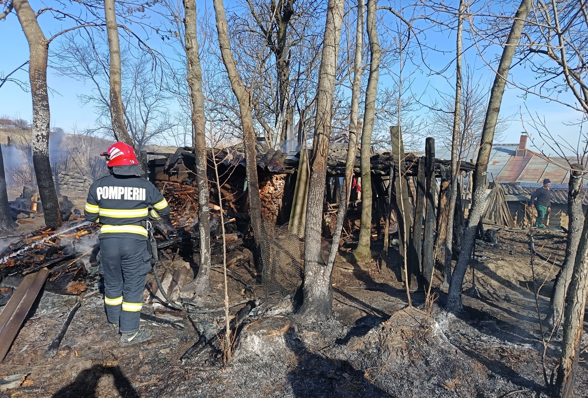 Un incendiu s-a produs, miercuri, într-o gospodărie din localitatea Copălău. O anexă, un depozit de lemne de foc, gardul din lemn și vegetația uscată au fost cuprinse de flăcări.