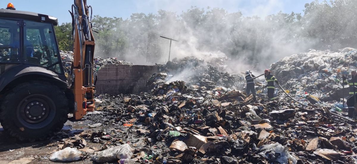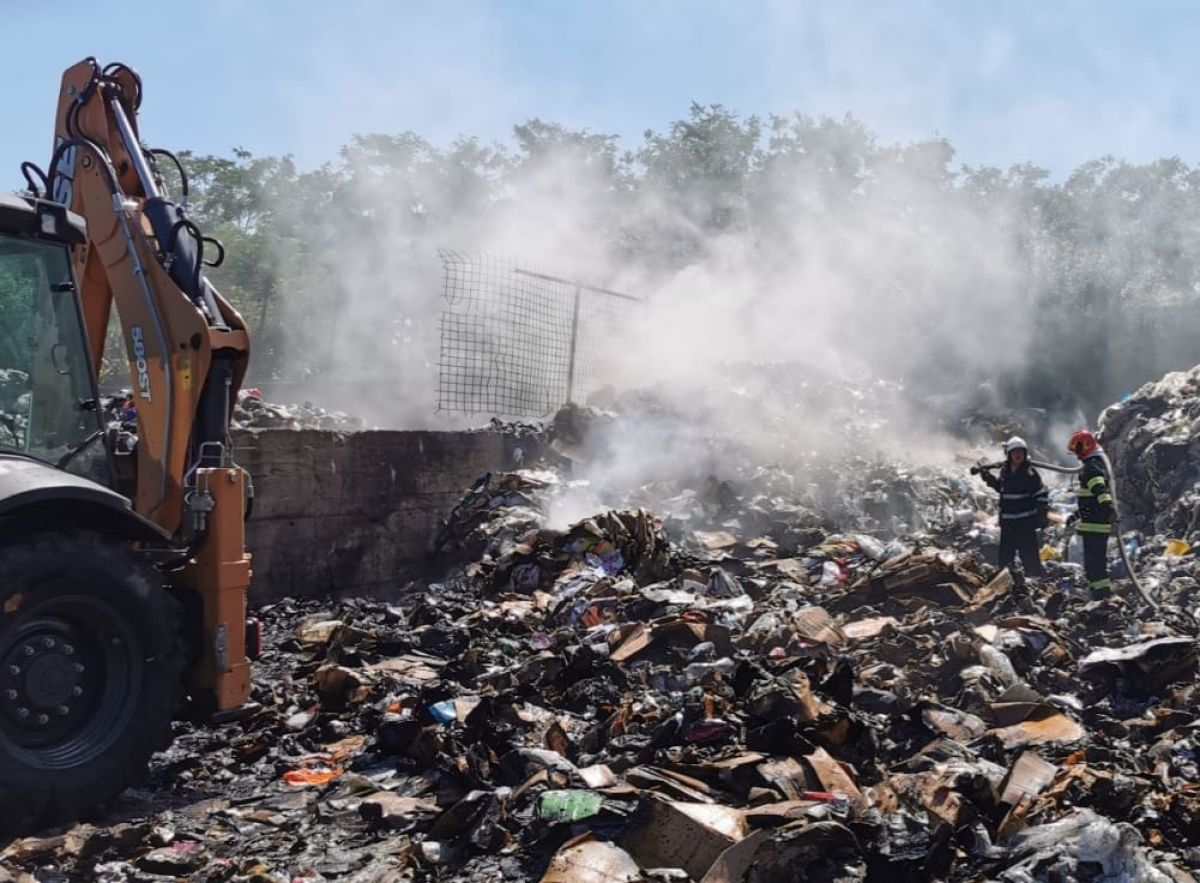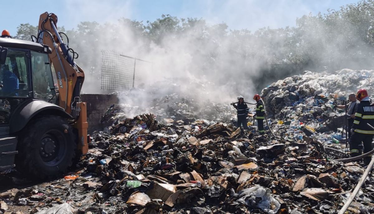 Peste 27 de tone de deșeuri plastice, reciclabile și gunoi menajer au ars, în această după-amiază, în localitatea Satu Nou.