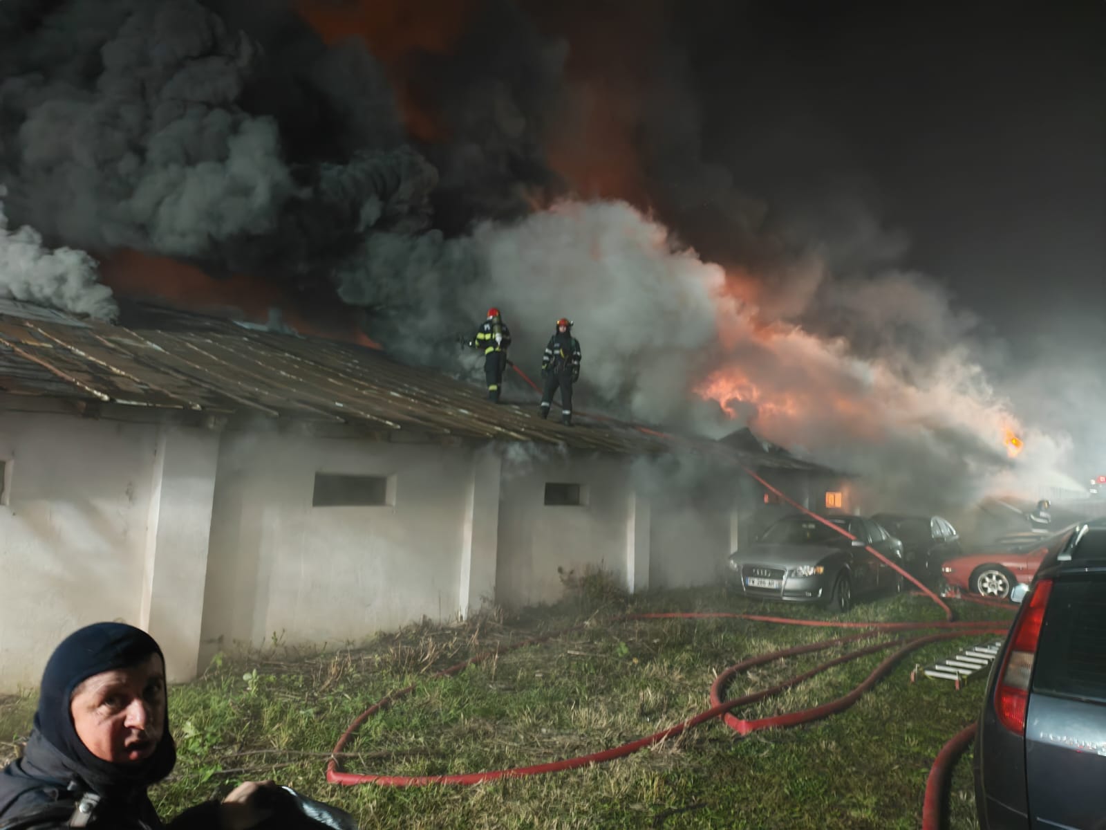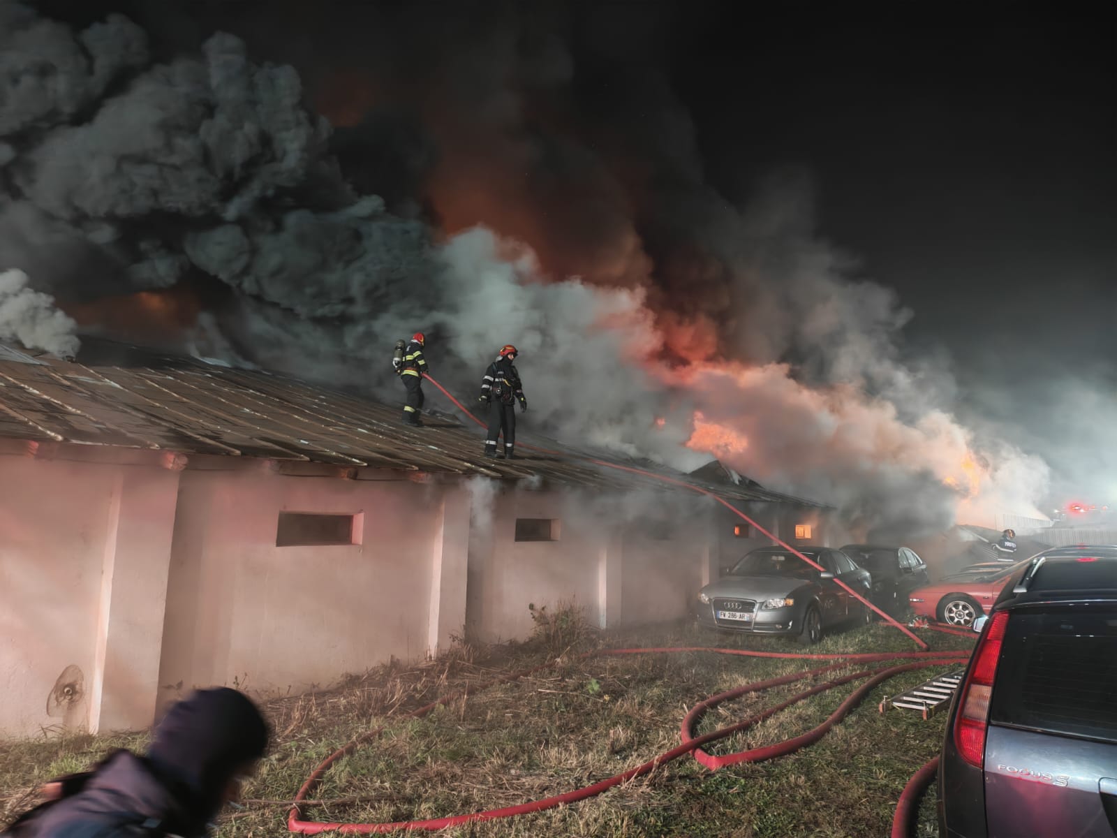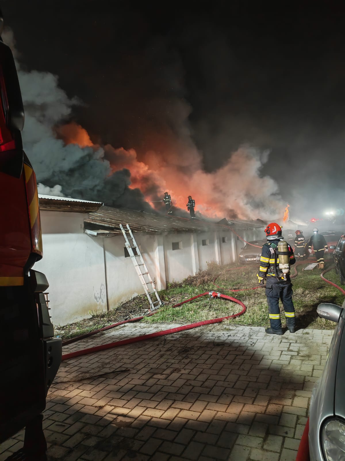 Pompierii militari din cadrul Detașamentelor Botoșani și Dorohoi intervin, de mai bine de trei ore, în sprijinul colegilor de la ISU Suceava pentru stingerea unui incendiu izbucnit la două hale, în localitatea Dumbrăveni.