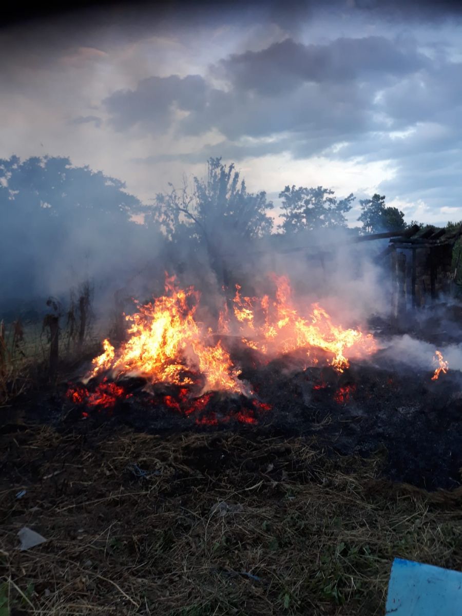 Proprietarul a relatat că a dat foc la depozitul de furaje, iar flăcările s-au extins la adăpostul de animale. Cercetările au fost preluate de Poliție.