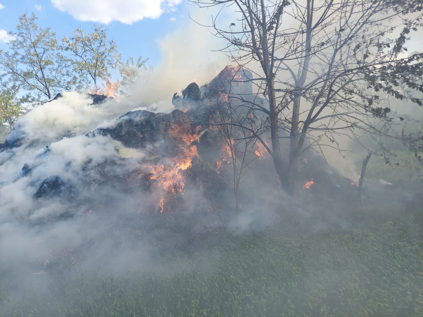 În scurt timp, flăcările au cuprins întregul depozit. Soția proprietarului a sunat după ajutor la pompieri, îngrijorată că incendiul s-ar putea extinde la casa, aflată la mai puțin de zece metri de depozitul de furaje.