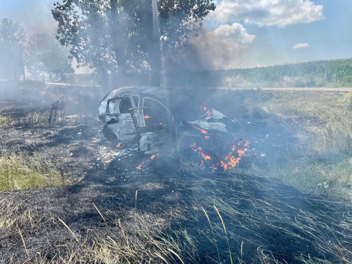 INCENDIU violent la Botoșani: O mașină a ars ca o torță, flăcările s-au extins și la o cultură de cereale - FOTO&VIDEO