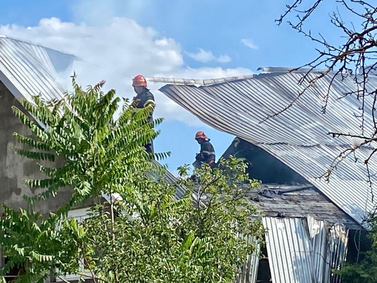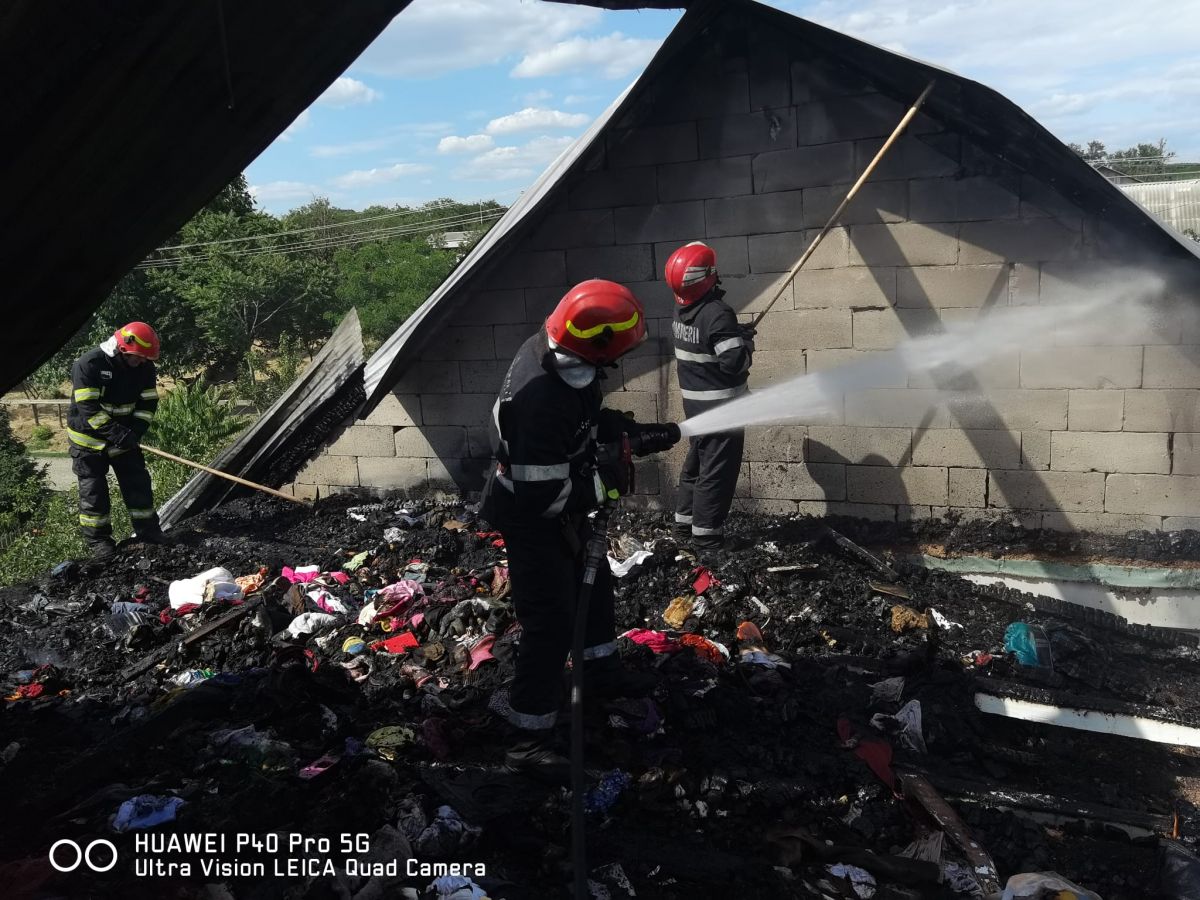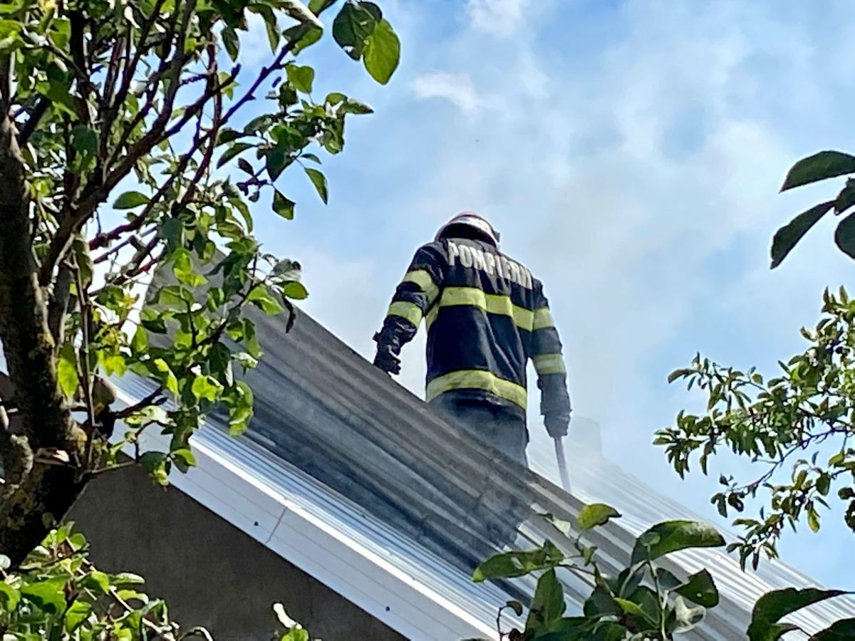 Aceștia au constatat faptul că ardeau cu flacără și degajări mari de fum acoperișul casei, pe o suprafață de 130 m.p., dar și bunurile depozitate în cele două camere de la etajul 1 al clădirii.