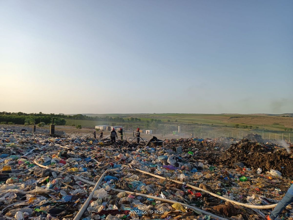 UPDATE, ora 20.43: Incendiul a fost lichidat. Cu ajutorul a trei buldoexcavatore se intervine pentru răscolirea deșeurilor în vederea identificării și eliminării eventualelor focare. La fața locului sunt prezenți și reprezentanți ai Consiliului Județean Botoșani, Agenției de Protecție a Mediului și ai Gărzii de Mediu.