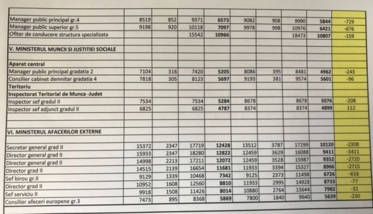 „În funcție de procentele pe care le vor pierde, aș putea să identific Ministerul de Externe ca și cap de listă, în sensul că aceștia pierd foarte mult la salariu prin aplicarea legii salarizării și prin trecerea contribuțiilor de la angajator la angajat. Funcționarii publici din conducere, cu toate că se referă și la șeful de birou, șef serviciu, director, director general și așa mai departe, aceștia pierd undeva la 37-38% la sută”, a spus Sebastian Oprescu.