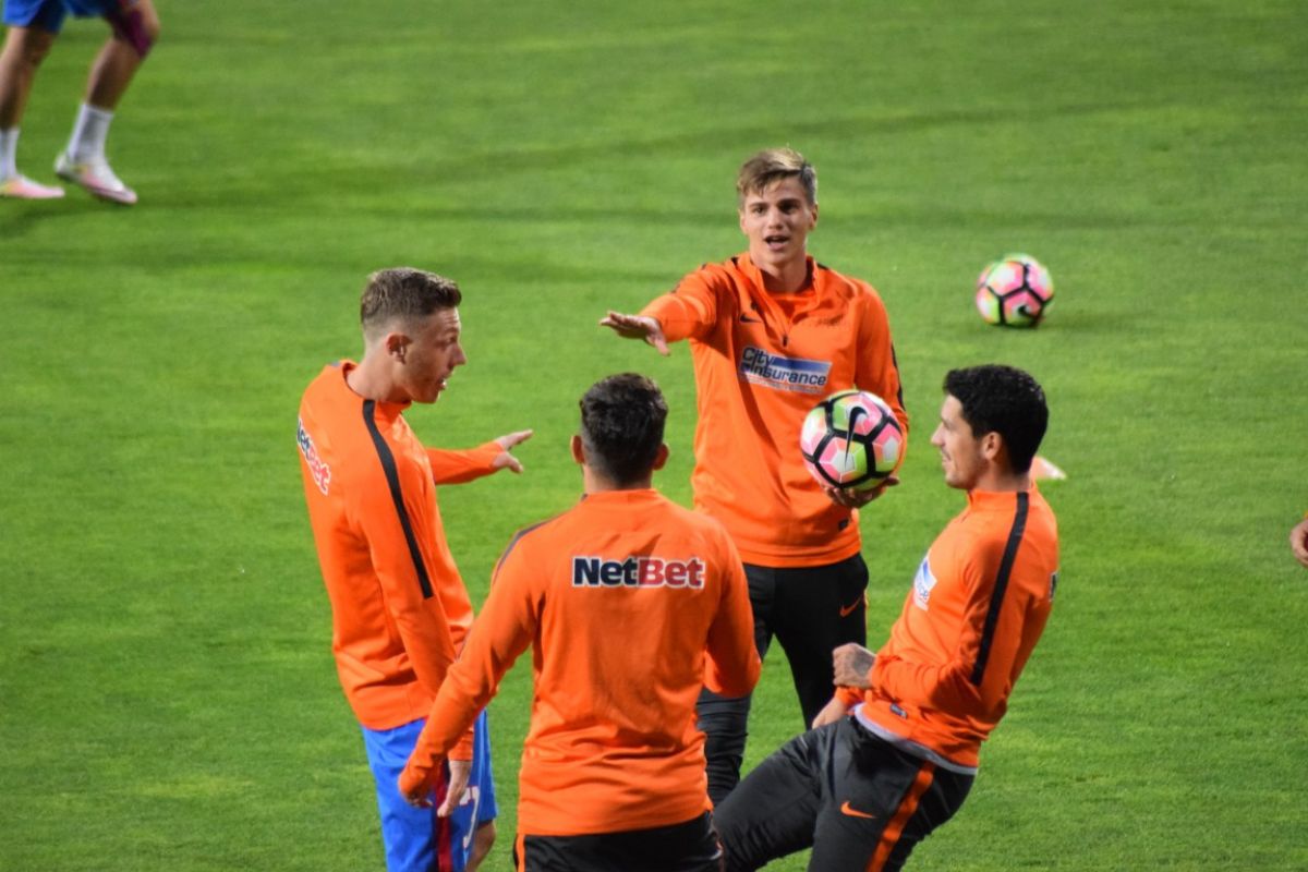 De la Steaua, primii care au simțit gazonul sub ghete au fost portarii. Abia după circa un sfert de oră au ieșit să se încălzească și jucătorii de câmp. Stewarzii au tras tunelul pentru a împiedica vreun suporter mai zelos. La ieșire, jucătorii oaspeți au fost fluierați de botoșănenii care au ajuns la meci.