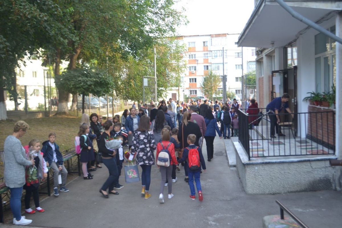 La Școala 11 din municipiul reședință de județ deschiderea de an școlar a început la 8:30, dar încă de la ora 8:00 părinții cu flori în mână și cu ai lor copii s-au adunat în curtea unității de învățământ.