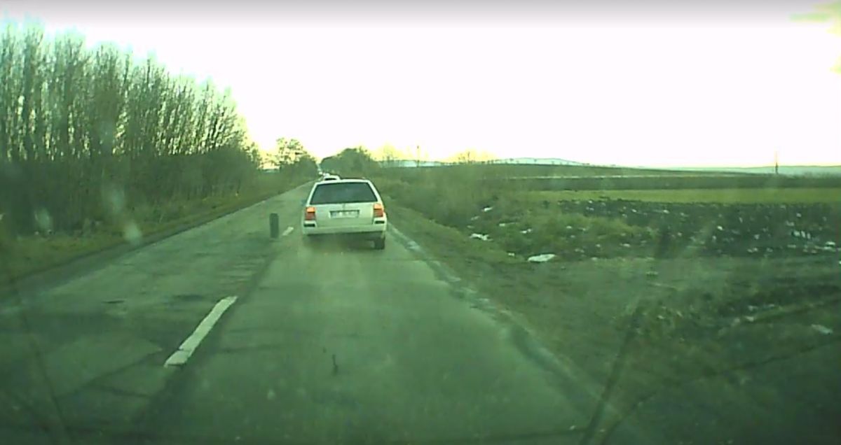 În filmulețul de nici un minut se poate observa cum o mașină este depășită de un autoturism.