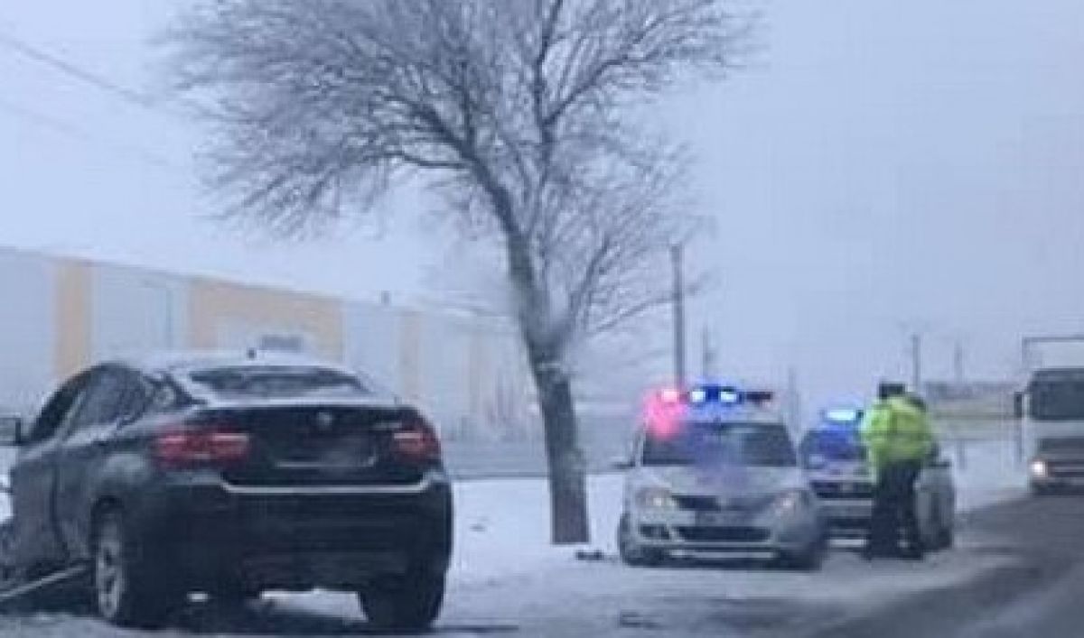 Inconștiență la volan: Circula cu viteză pe un drum cu polei, șoferul a ajuns la spital