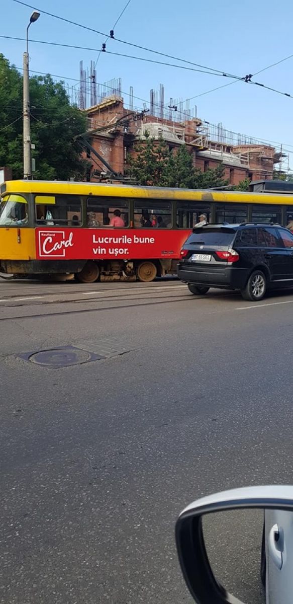 Un tramvai a sărit de pe șină la intersecția străzilor Sucevei cu Calea Națională, în apropiere de E.ON. Zona, conform informațiilor oferite de polițiști este una care se încadrează în categoria celor de risc, unde șina prezintă probleme.