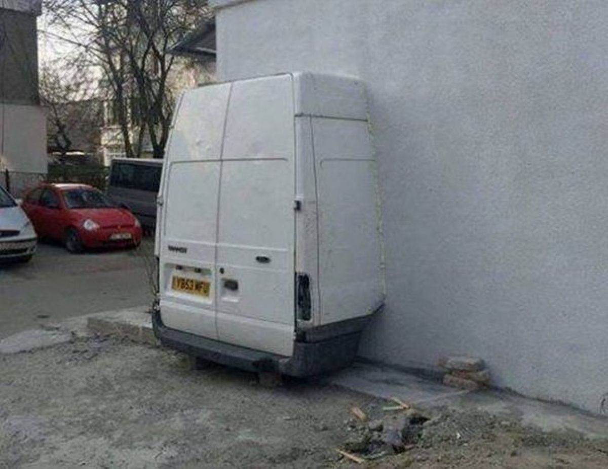 Dupa sibianul cu un Audi infipt in casa, de acum cativa ani, a aparut si bacauanul cu o duba atasata de peretele apartamentului de la parter. Un proprietar din Bacau si-a izolat apartamentul pe exterior si „a lipit” pe un perete al imobilului spatele unei autoutilitare.