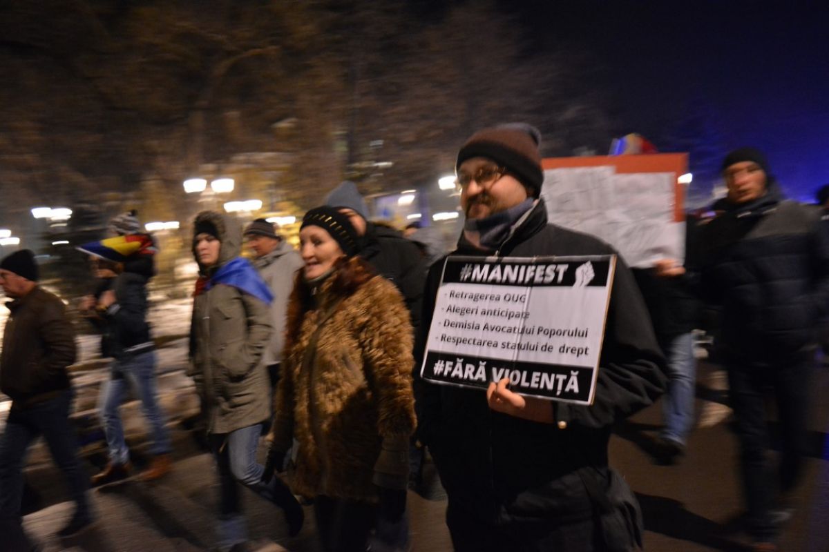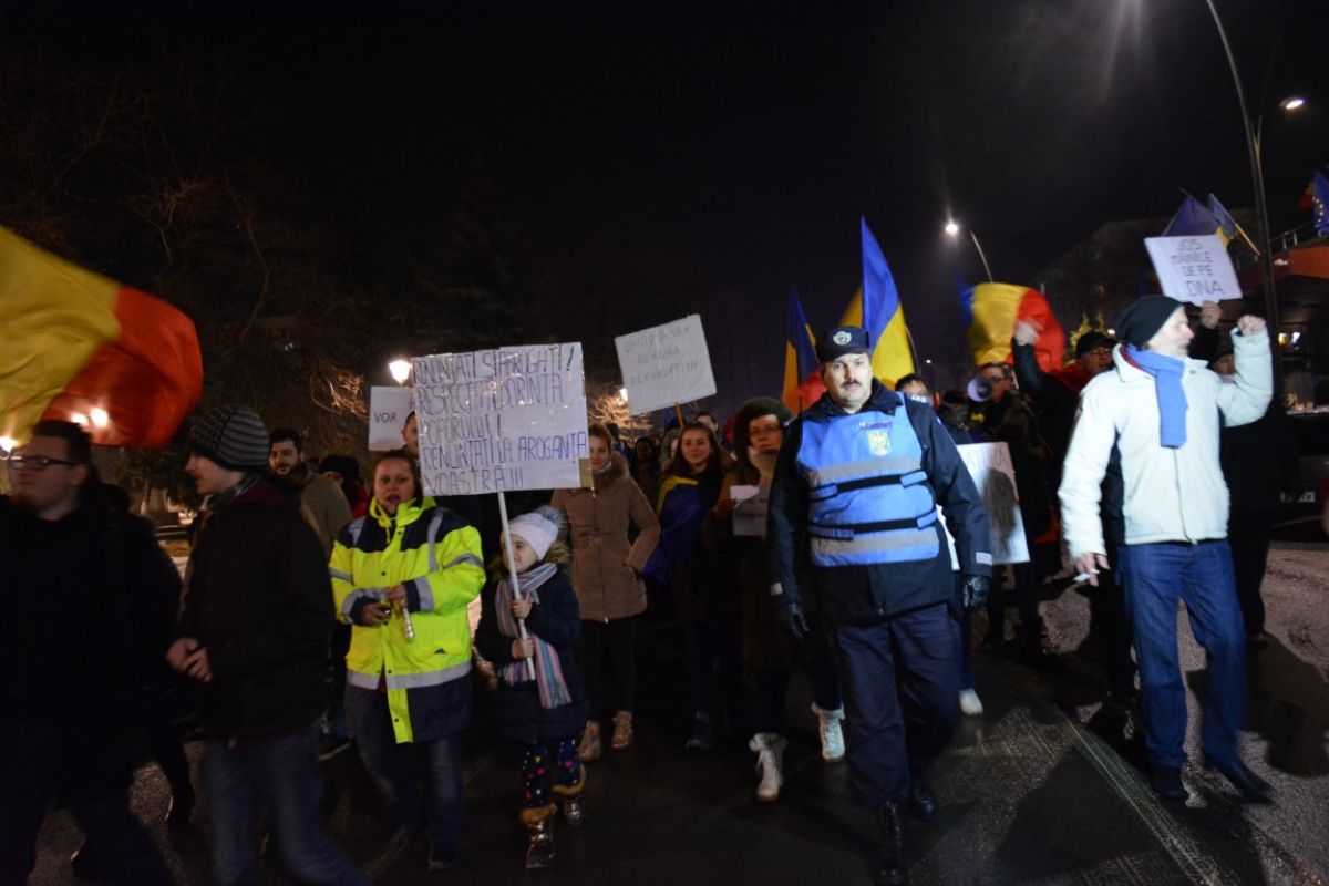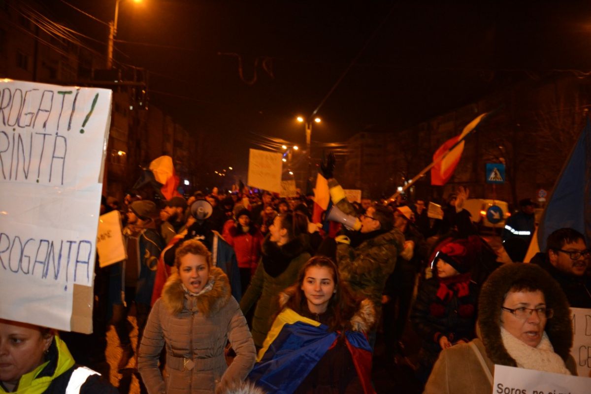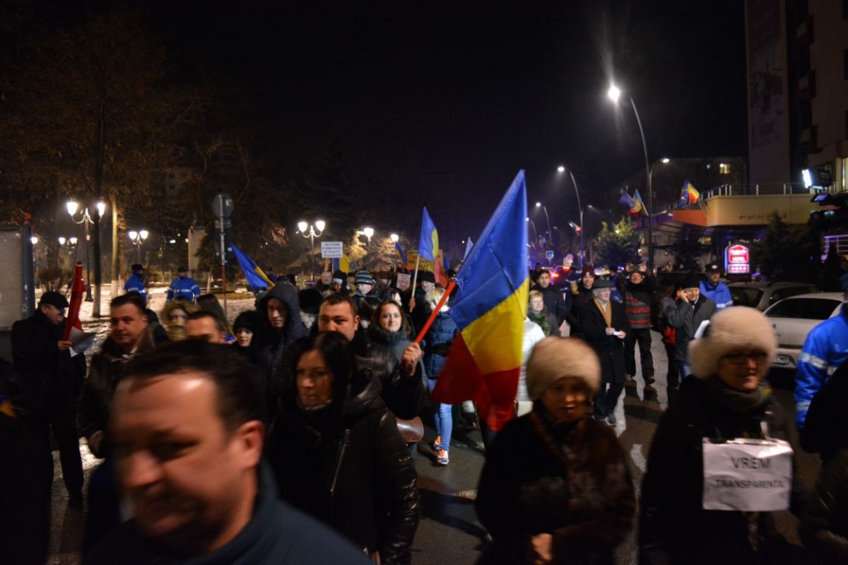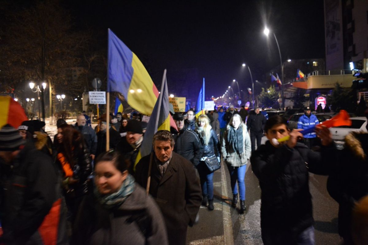 Circa 1.000 de oameni s-au întâlnit în Piaţa Revoluţiei, de unde au plecat din nou prin oraş. Au făcut dreapta pe Cuza Vodă, iar apoi au mers pe Calea Naţională, unde se află şi în momentul redactării acestei ştiri.