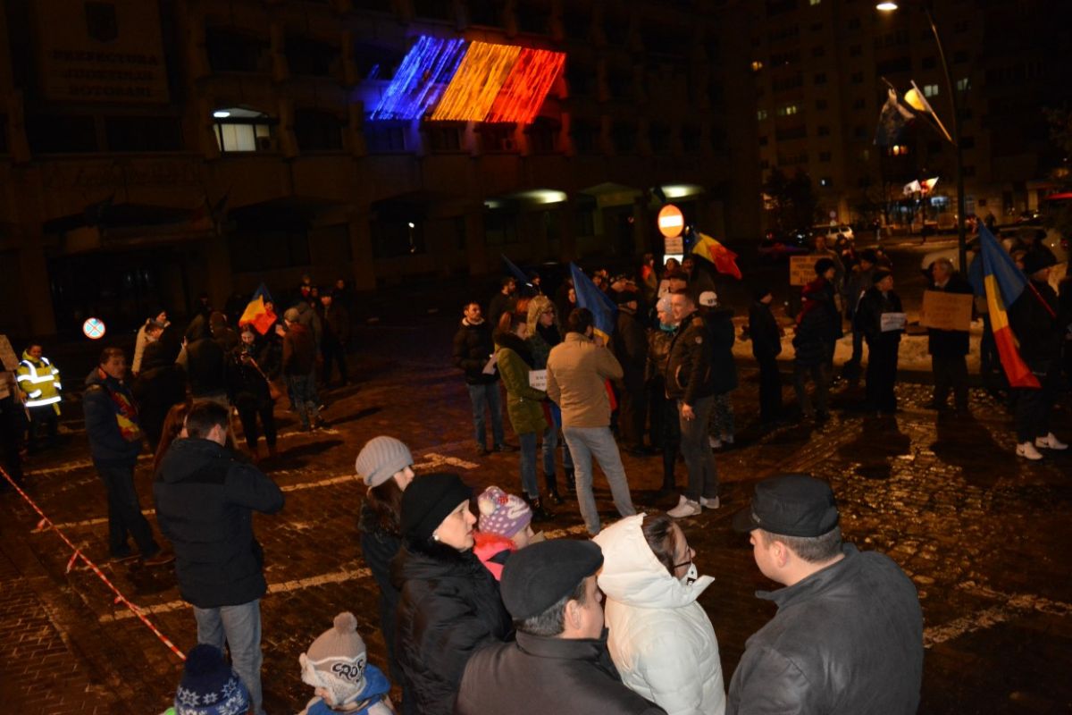Botoşănenii au ieşit în stradă pentru a treia seară consecutiv ca să protesteze faţă de adoptarea OUG 13/2017 prin care Codul Penal s-a modificat favorizând o sumedenie de politicieni cu dosare penale.