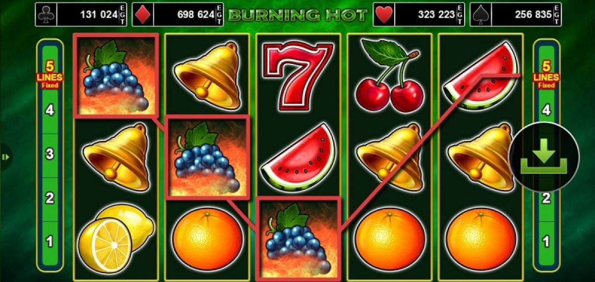 Respectă tiparul sloturilor EGT cu fructe și șeptari, cu 5 role și 3 rânduri. Se numește „Burning Hot” pentru că simbolurile iau foc atunci când formează un câștig. Trifoiul cu patru foi, despre care se spune că îți aduce mare noroc atunci când îl găsești în viața reală, este Wild și substituie orice altă pictogramă cu excepția dolarului și steluței purpurii, care sunt Scatter.
