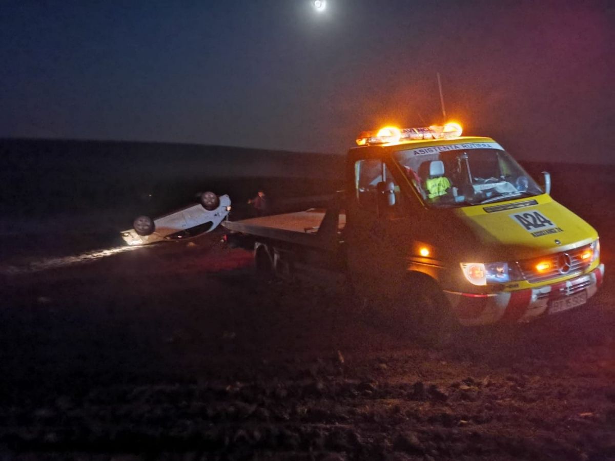 Din motive încă neclarificate, șoferul a pierdut controlul asupra Daciei Logan în care se afla, a părăsit carosabilul și s-a răsturnat de mai multe ori pe câmp.