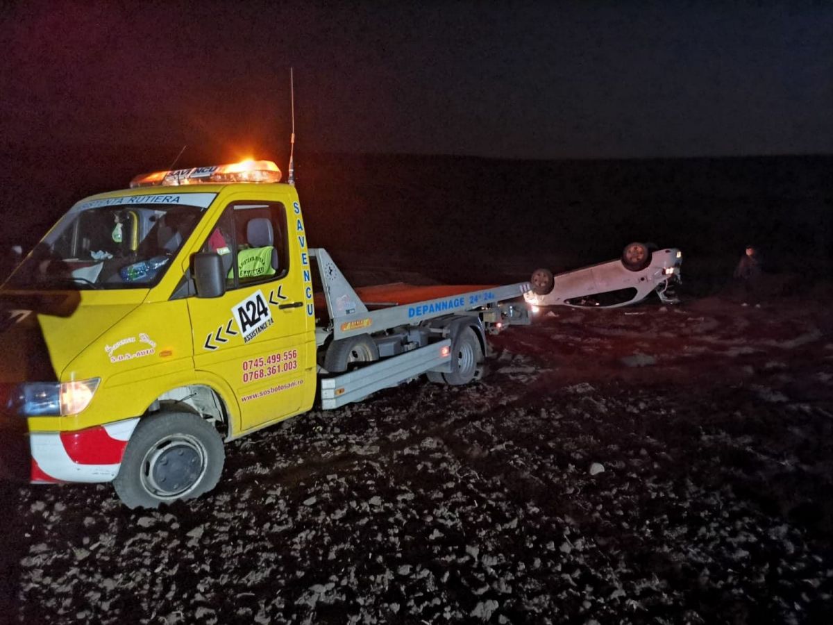 Automobilul a fost readus pe roți și remorcat de o autospecială de la SOS Botoșani.