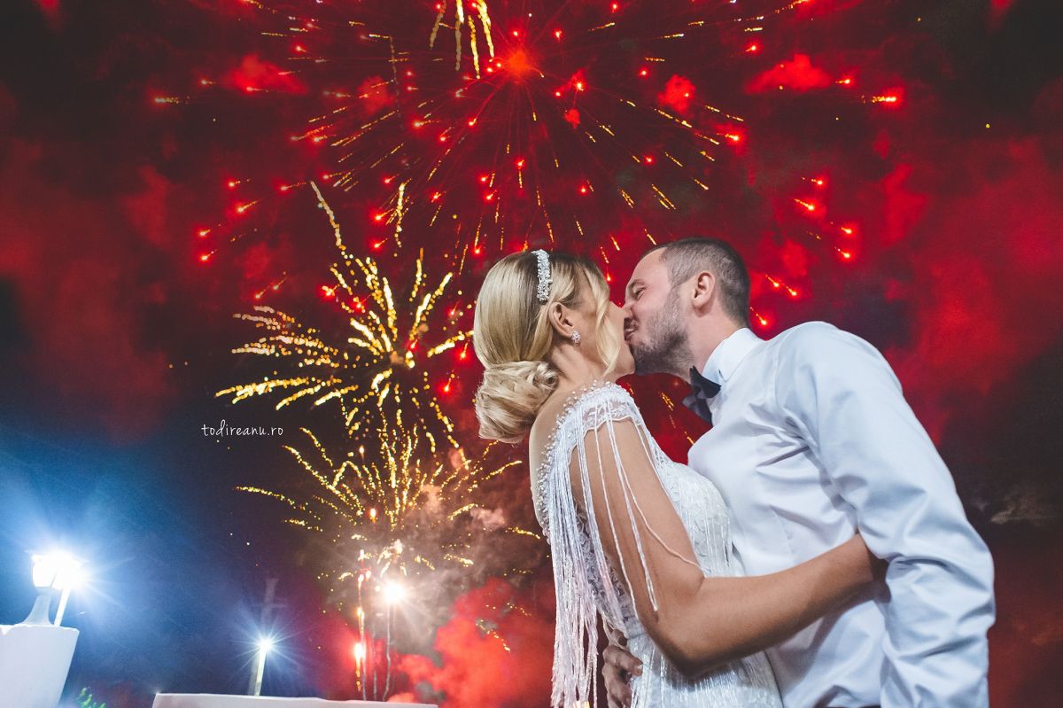Sute de invitați, de la primari și parlamentari la directori și oameni de afaceri. Mulți tineri în mijlocul cărora mirii au strălucit, dar și muzică bună și foc de artificii în miez de noapte.