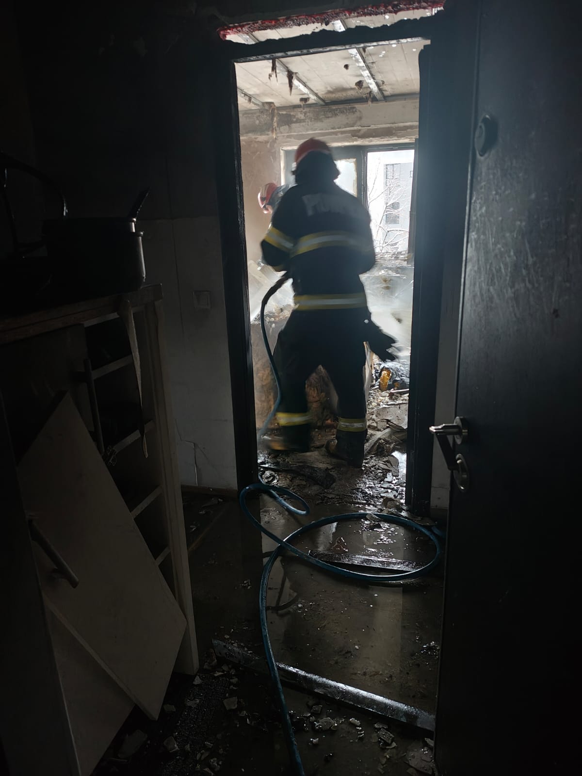 Incendiul a fost localizat rapid, fiind împiedicată extinderea flăcărilor la întregul apartament. Fumul a fost evacuat din scara blocului cu ajutorul unui ventilator.