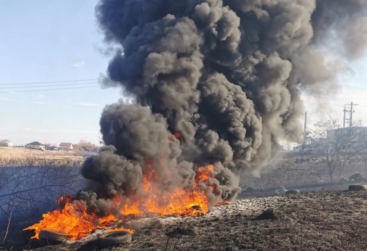 Au ars : o cantitate însemnată de cauciucuri, un autoturism care era pentru dezmembrări și vegetația uscată de pe aproximativ cinci hectare.