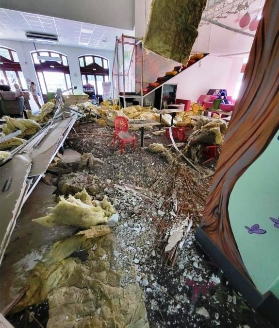 Tavanul a căzut la sfârșitul unei petreceri pentru copii – VIDEO clipele de după prăbușire