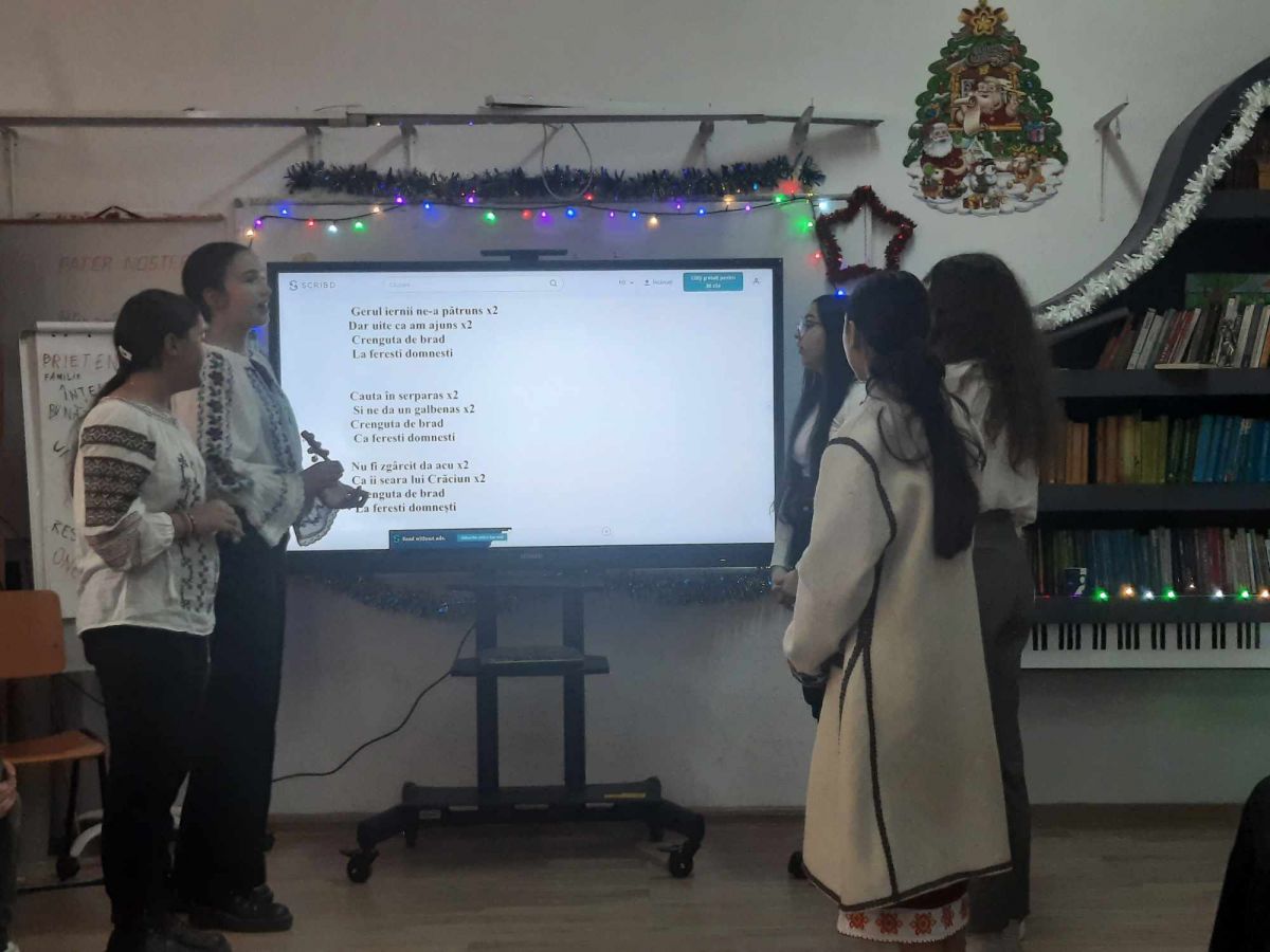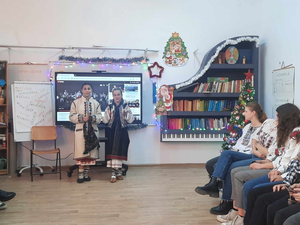 Elevii oaspeți au adus nuci poleite, lucrate cu propriile mâini, pentru a putea împodobi pomul de Crăciun, în spiritul obiceiurilor de altădată, când bunicii și străbunicii împodobeau pomul cu nuci și colaci.
