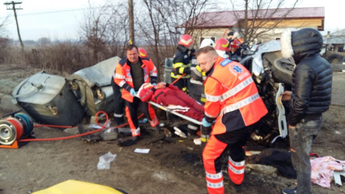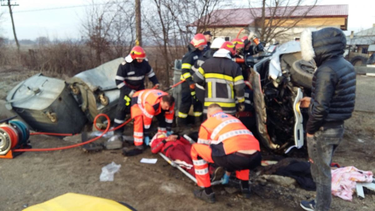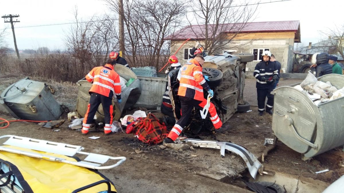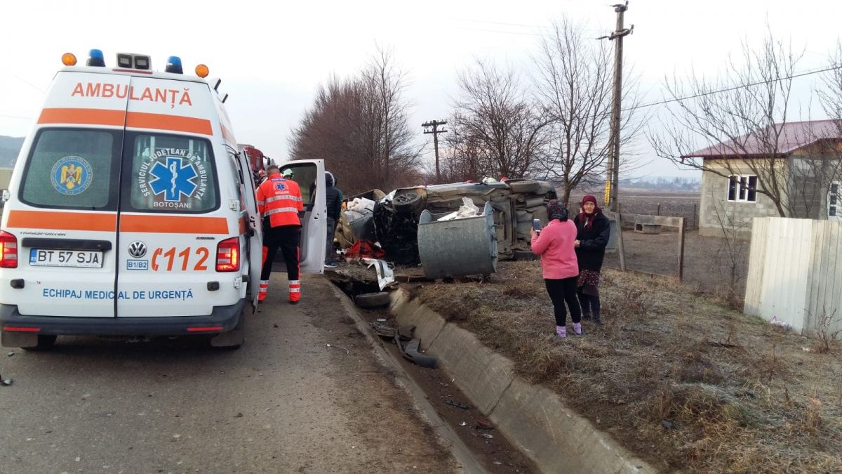 Accident rutier extrem de grav în această dimineață, la Vorona. Patru tineri s-au izbit într-o platforma de deșeuri si s-au răsturnat cu mașina.