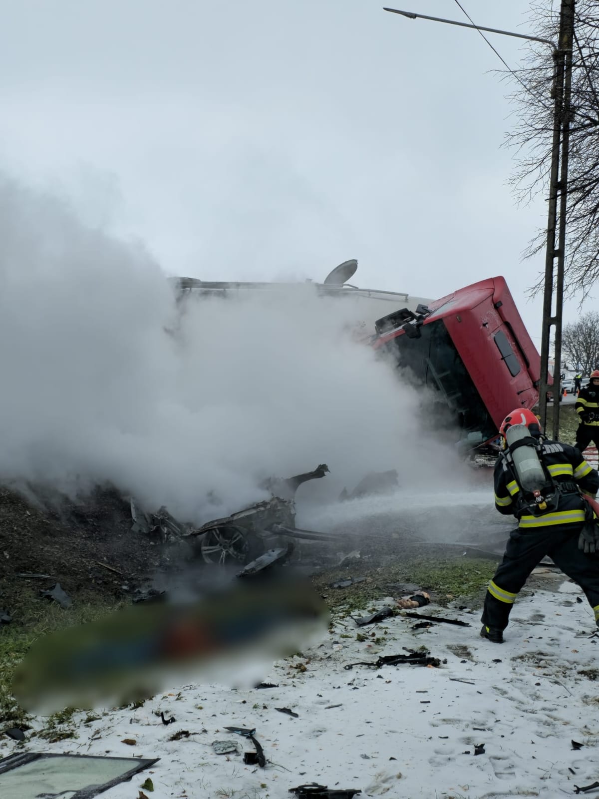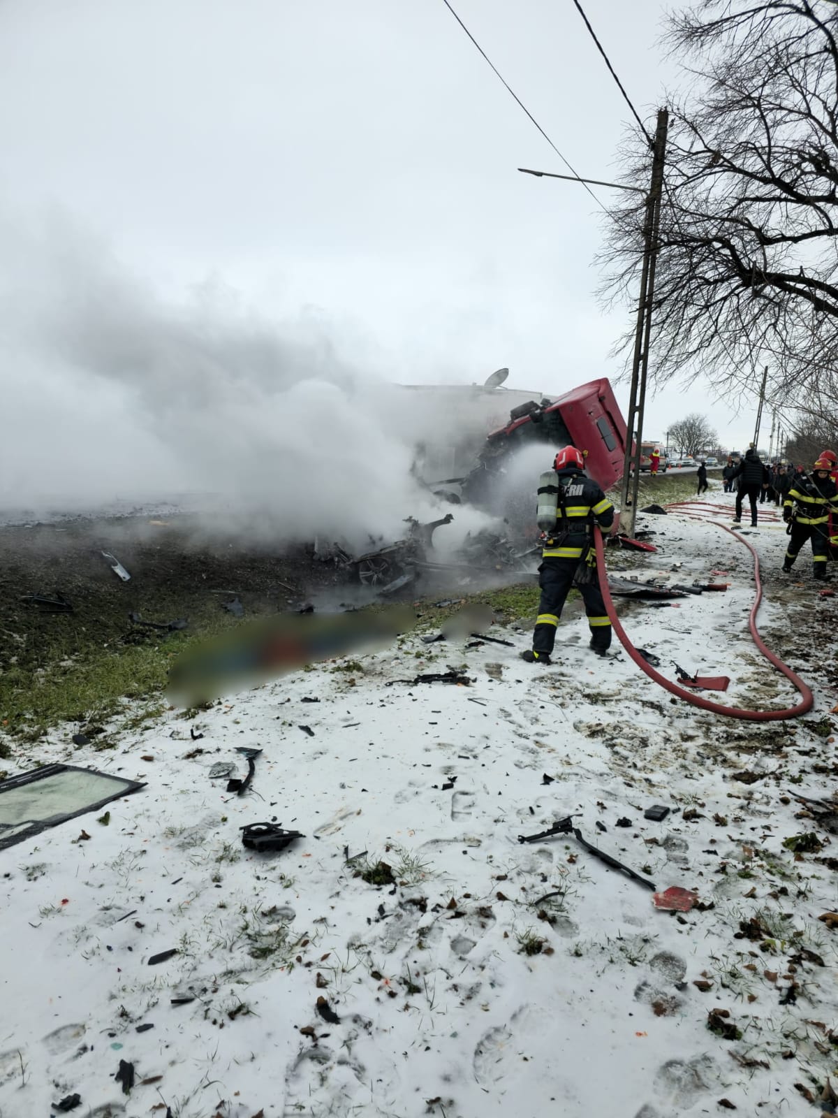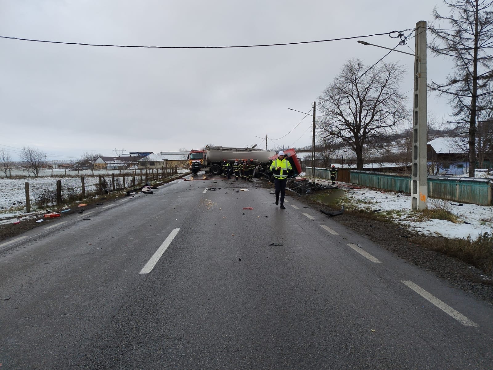 În urma impactului dintre cele doua vehicule, autoturismul a luat foc. Din primele verificări s-a constatat ca autocisterna condusă de către un bărbat de 58 de ani, circula pe direcția Roman către Suceava și era încărcată cu produse lactate. În autocisterna se afla șoferul și soția acestuia de 37 ani, care au suferit leziuni minore, fiind transportati la unitate medicală.