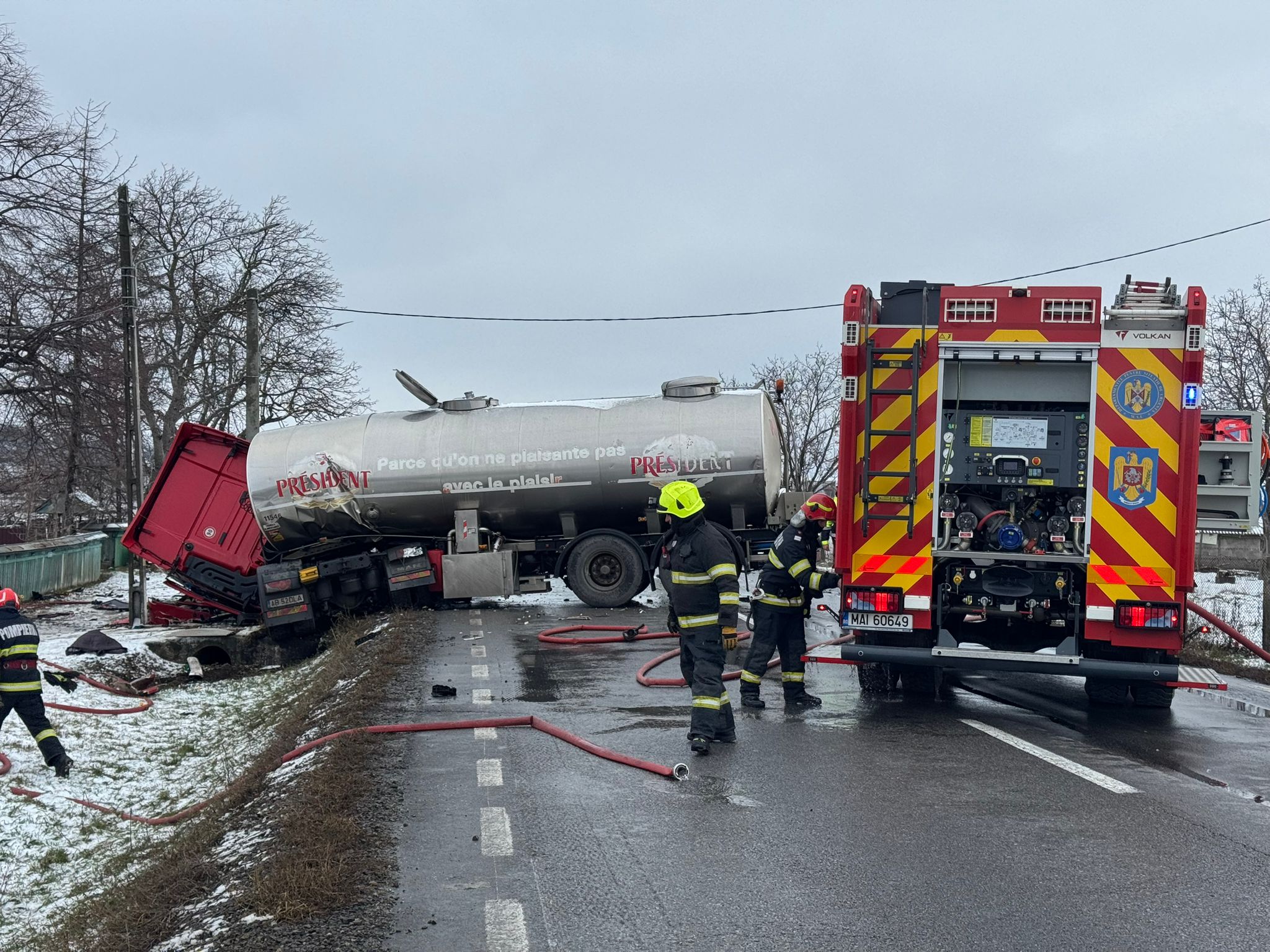 Echipajul de poliție rutieră a constatat că accidentul s-a produs pe DN2, pe raza localității Forăști, fiind implicate un autoturism și o autocisterna.