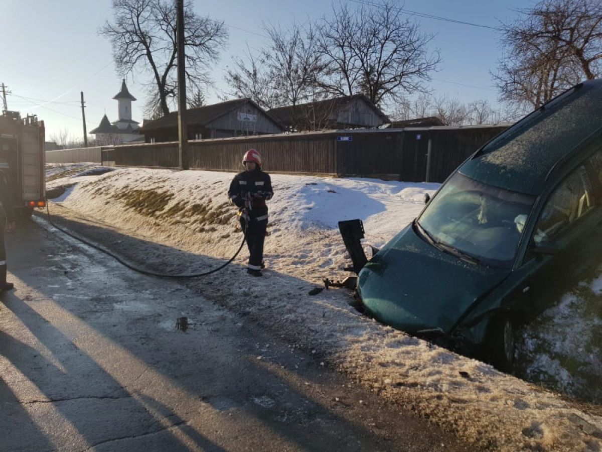 Mai exact, evenimentul rutier s-a produs pe raza localităţii Bobuleşti, oraşul Ştefăneşti acolo unde un autoturism a derapat şi a intrat cu partea din faţă într-un şanţ de pe marginea carosabilului.