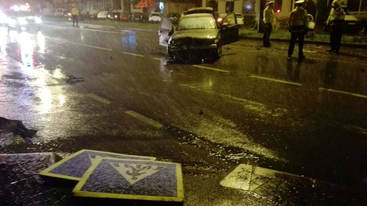 Conducătorul auto fie avea viteză, fie pur și simplu a derapat din cauza carosabilului ud de la precipitațiile de lapoviță și ninsoare.