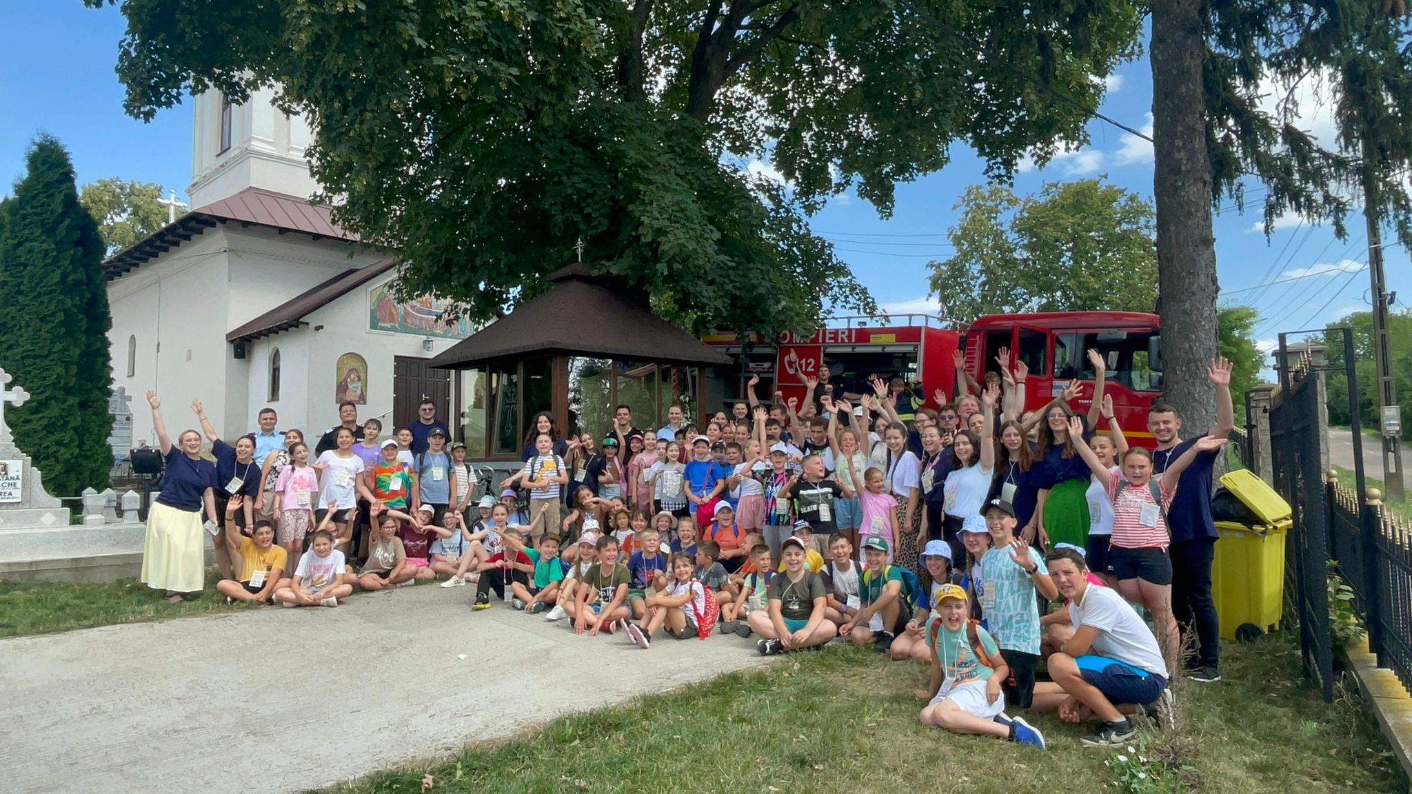 Peste 100 de copii și voluntari au petrecut ziua alături de pompieri la biserica “Adormirea Maicii Domnului” din Vorona Mare, în cadrul taberei de zi „Bucuria Prieteniei”.