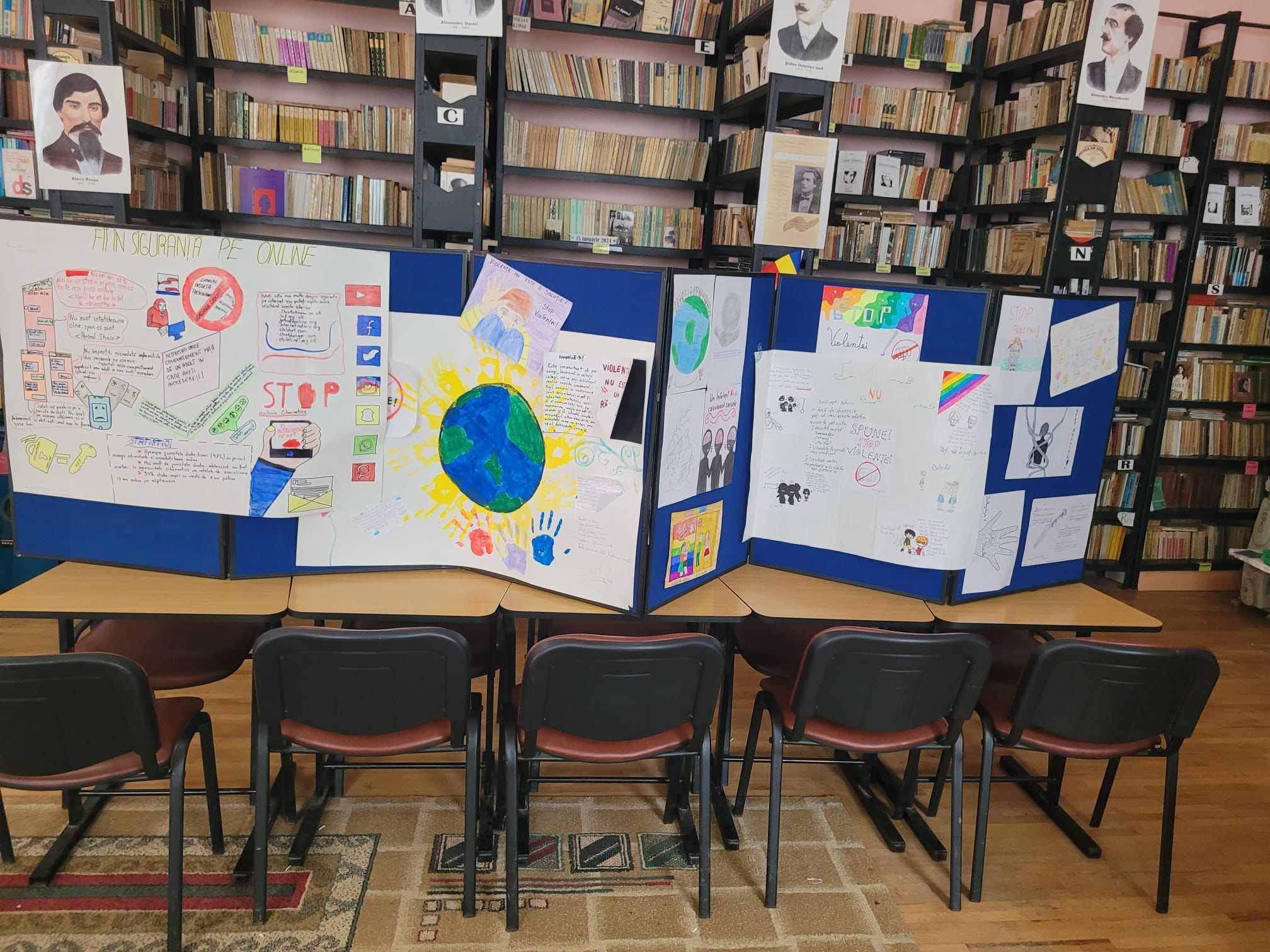 La finalul activității, participanți au vizitat expoziția de desene/afișe cu titlul „Ia atitudine!” din biblioteca Liceul Tehnologic „Petru Rareș” Botoșani, gazda întălnirii de astăzi.