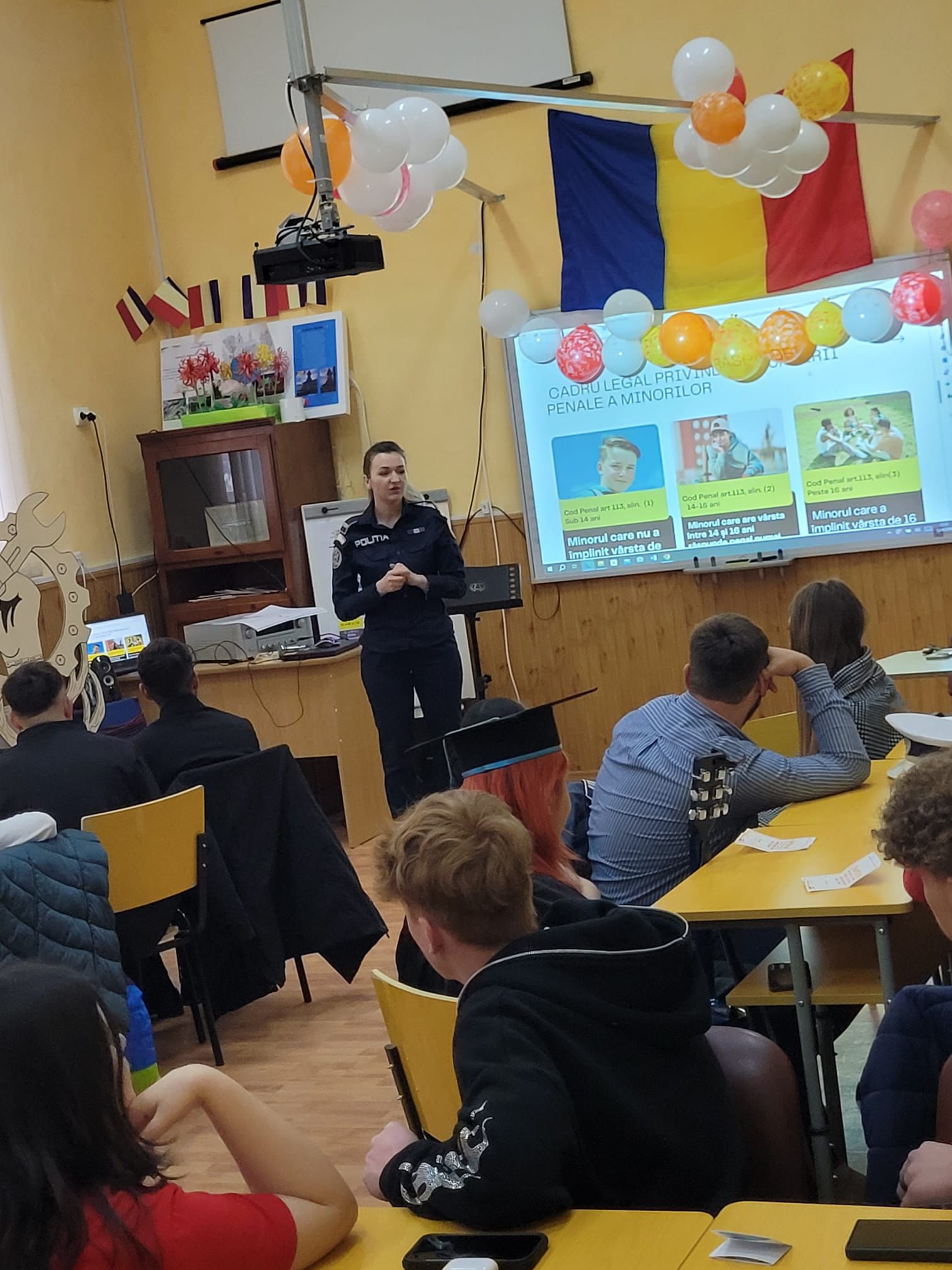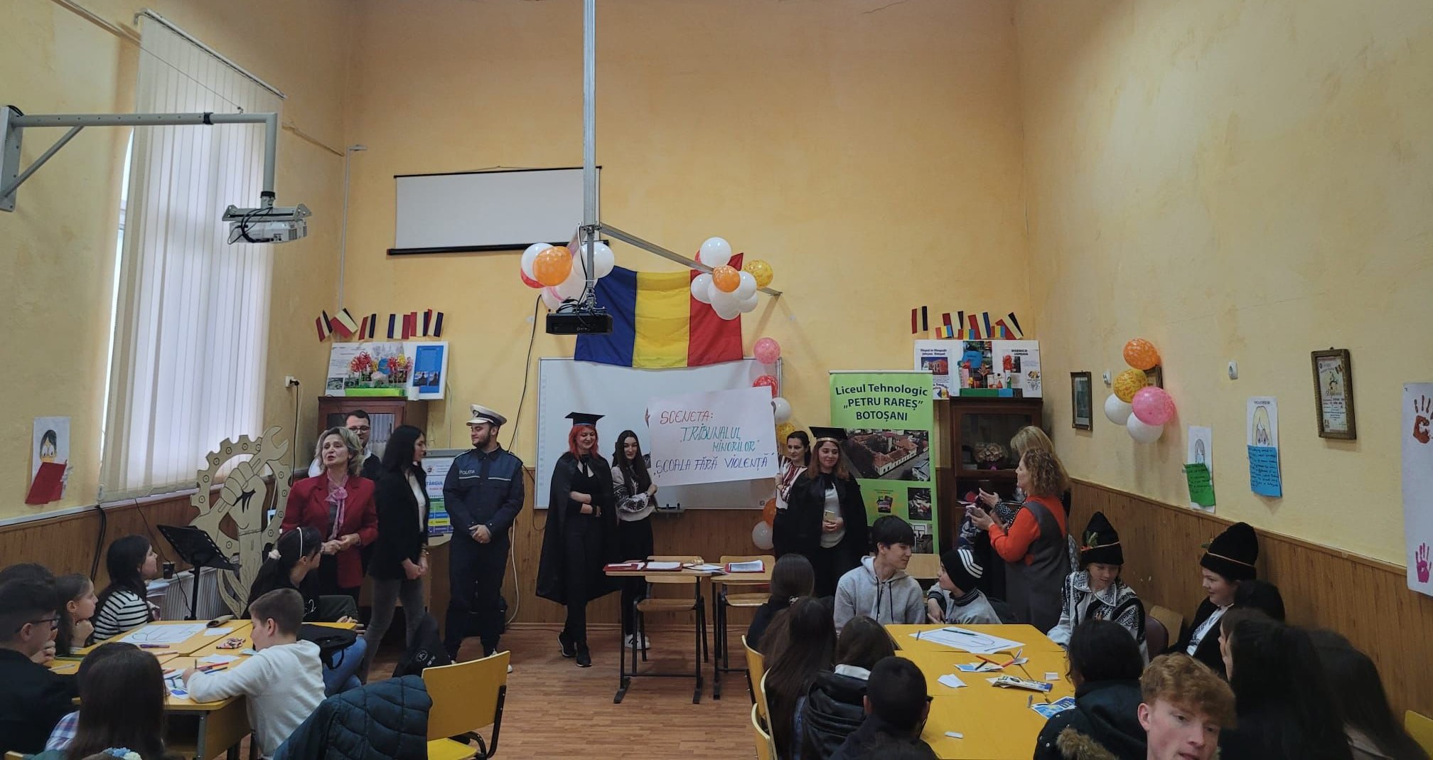Specialiști din cadrul Inspectoratului de Poliție Județean Botoșani - Compartimentul de analiză şi prevenirea criminalităţii - au prezentat informații despre consecințele comportamentului violent și măsurile legale aplicate în astfel de cazuri, în scopul conștientizării și prevenirii fenomenului la nivelul unităților școlare.