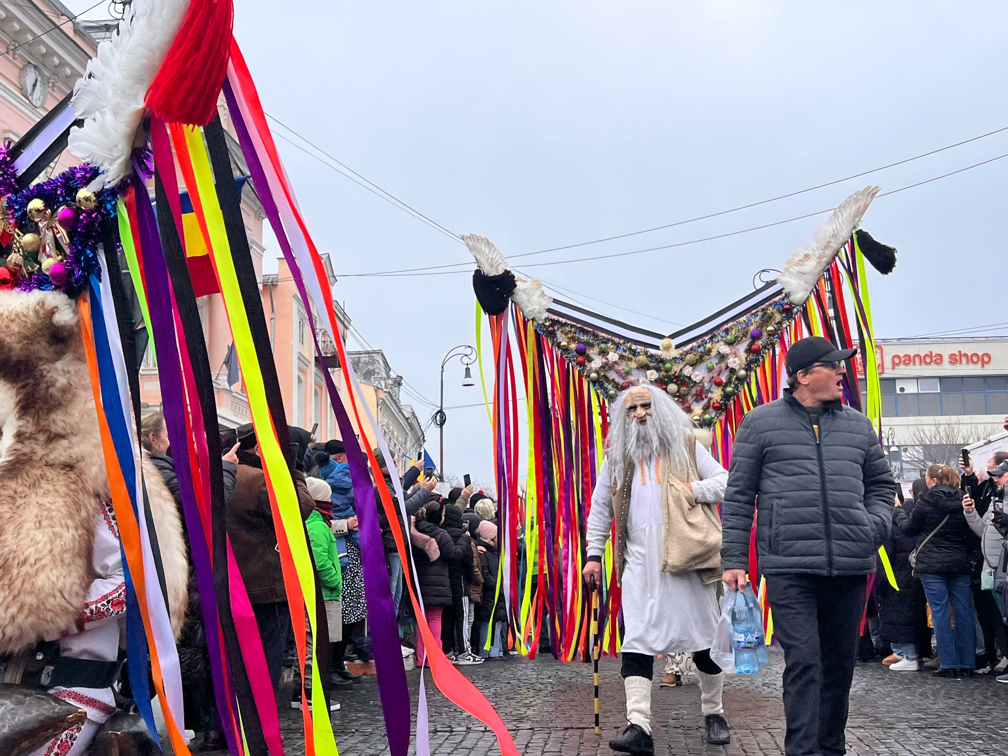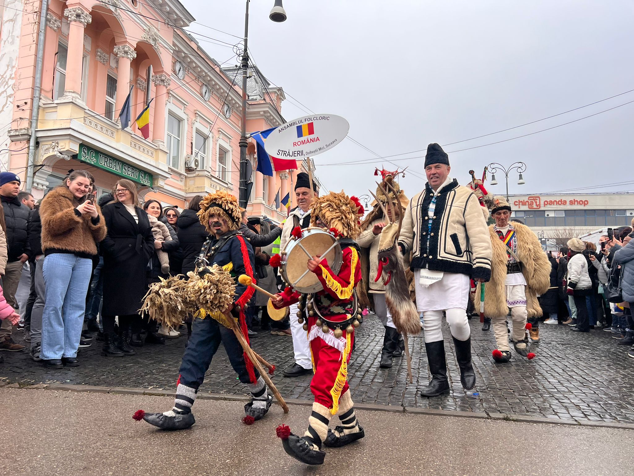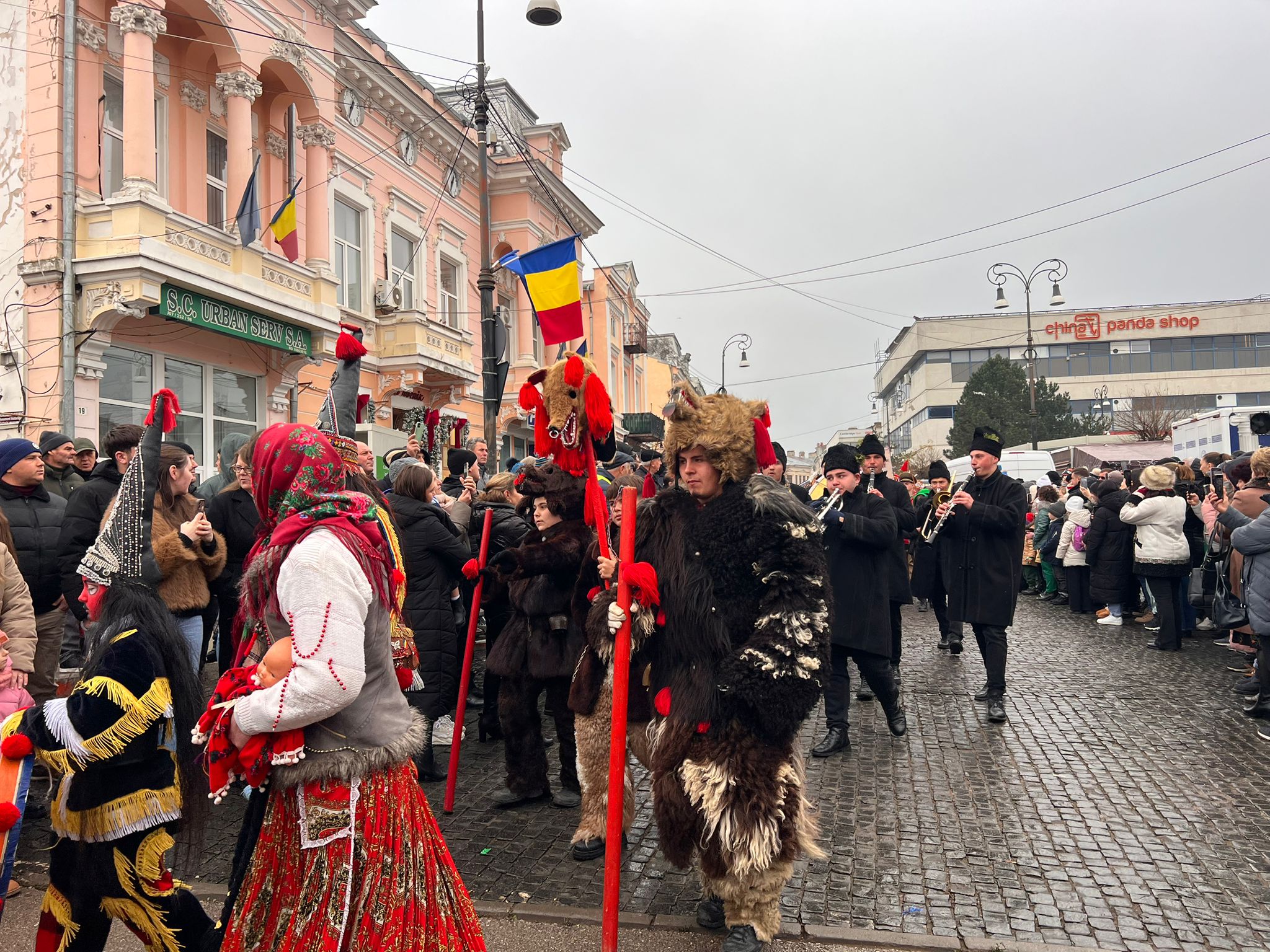 La ora 12:00, pe scena montată în Centrul Vechi este programat spectacolul formațiilor de datini și obiceiuri de iarnă.