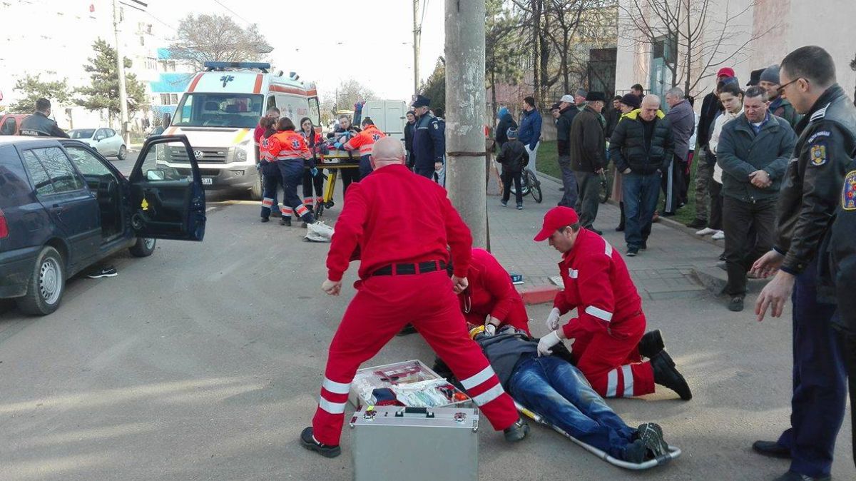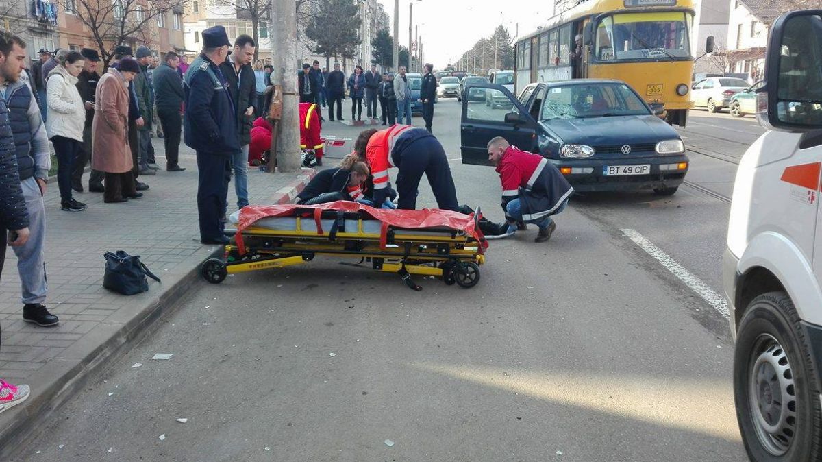 Două persoane, un bărbat și o femeie au fost grav accidentate de un autoturism marca VW Golf, în care s-ar fi aflat doi tineri. Femeia avea fața plină de sânge și a fost deja preluată de o ambulanță și transportată la Unitatea de Primiri Urgențe a Spitalului Județean Mavromati Botoșani. Bărbatul se pare că se află într-o stare mai gravă și este stabilizat în aceste momente pe asfalt, de către medicii de la Terapie Intensivă Mobilă – SMURD. El are fața plină de sânge.