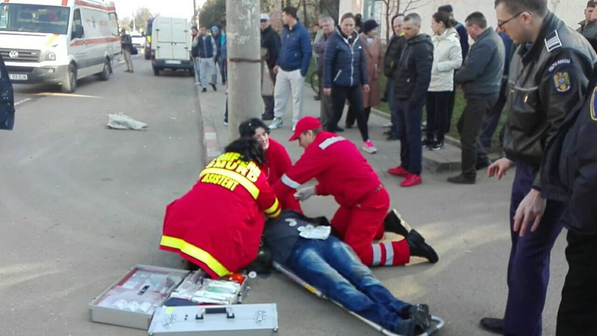 Trei ambulanțe au ajuns în urmă cu câteva minute pe Calea Națională, lângă Mecanex, unde a avut loc un grav accident de circulație.