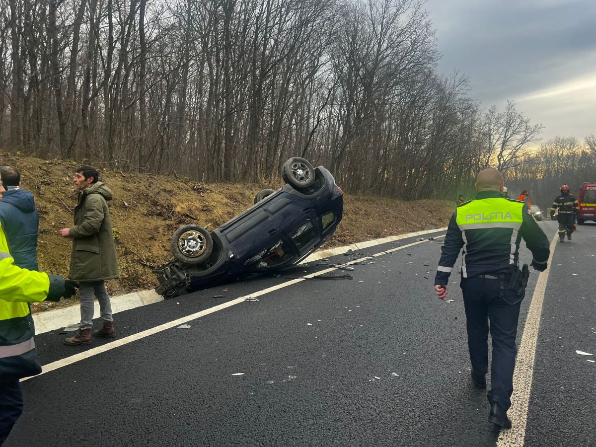 Șoferul din mașina răsturnată nu a suferit răni grave, victimele fiind din celălalt autoturism.