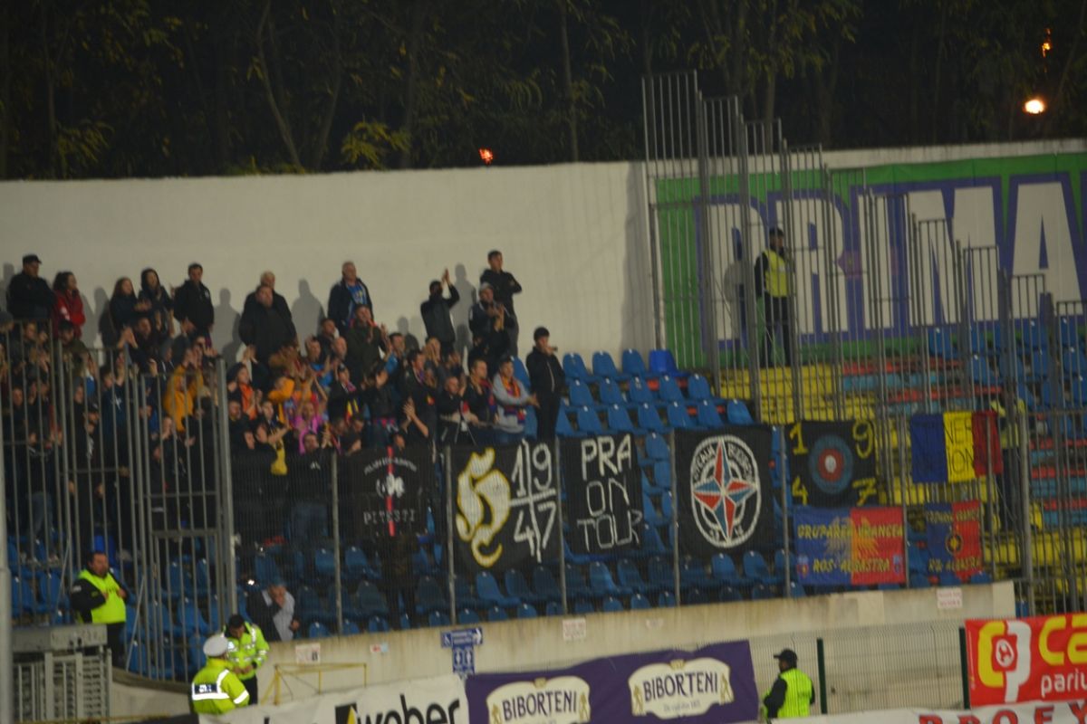 Sunt în jur de 5.000 de oameni, peluza Marian Crudu având sub 100 de spectatori, cu excepția sectorului rezervat oaspeților, populat de aproximativ o sută de FCSB-iști. Peluza Ion Bordeanu este ocupată la două treimi din capacitate. Ca de obicei de la plecarea lui Cornel Șfaițer și de această dată lipsește galeria.
