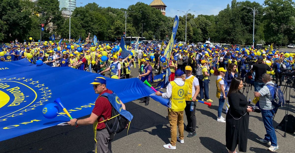 În aceste momente, angajații din Sănătate protestează la București. Acțiunea este organizată de Federația „Solidaritatea Sanitară”.