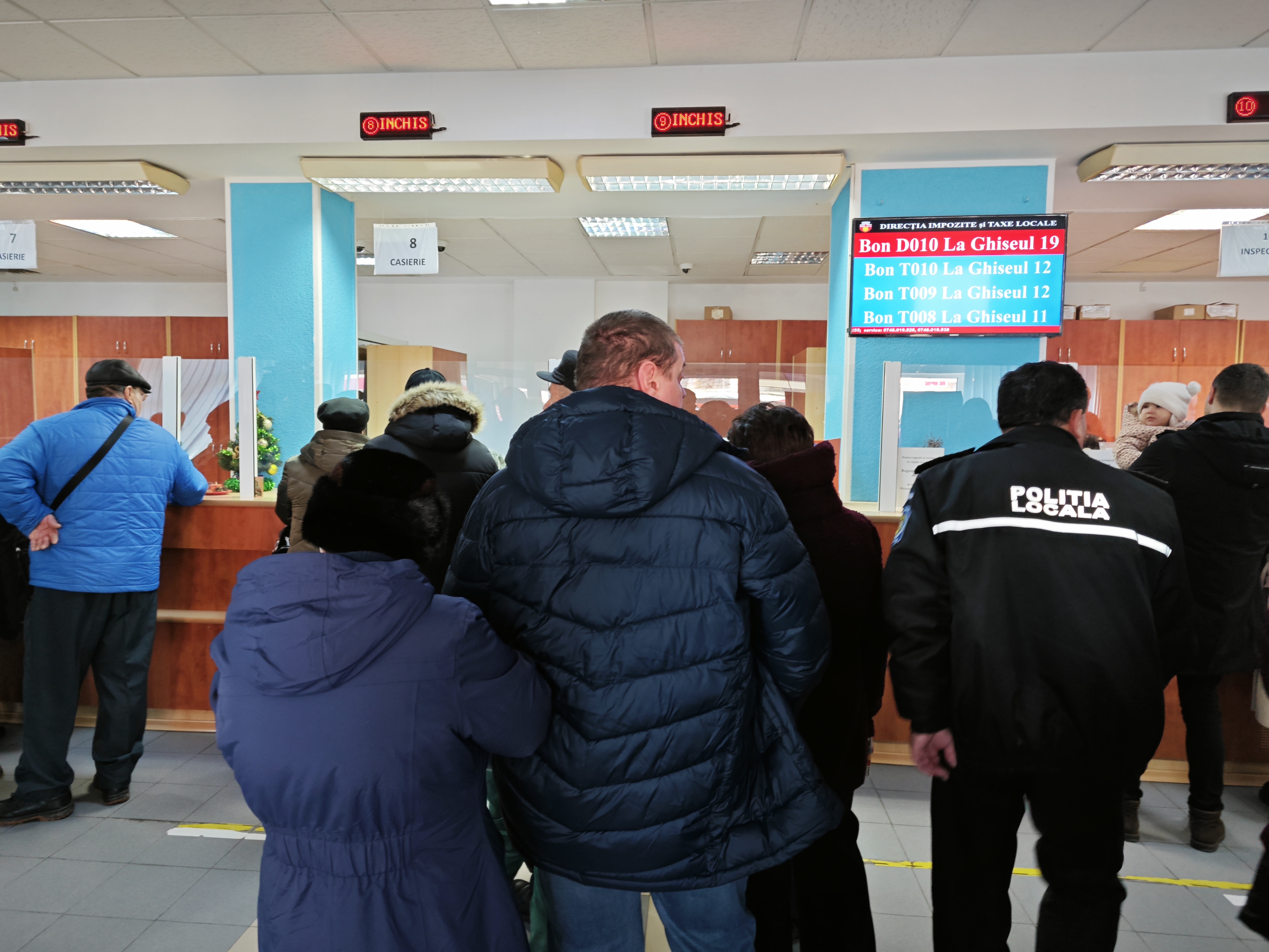 În fiecare an, când se deschid ghișeele, se formează tradiționala coadă pentru achitarea impozitelor și altor taxe.