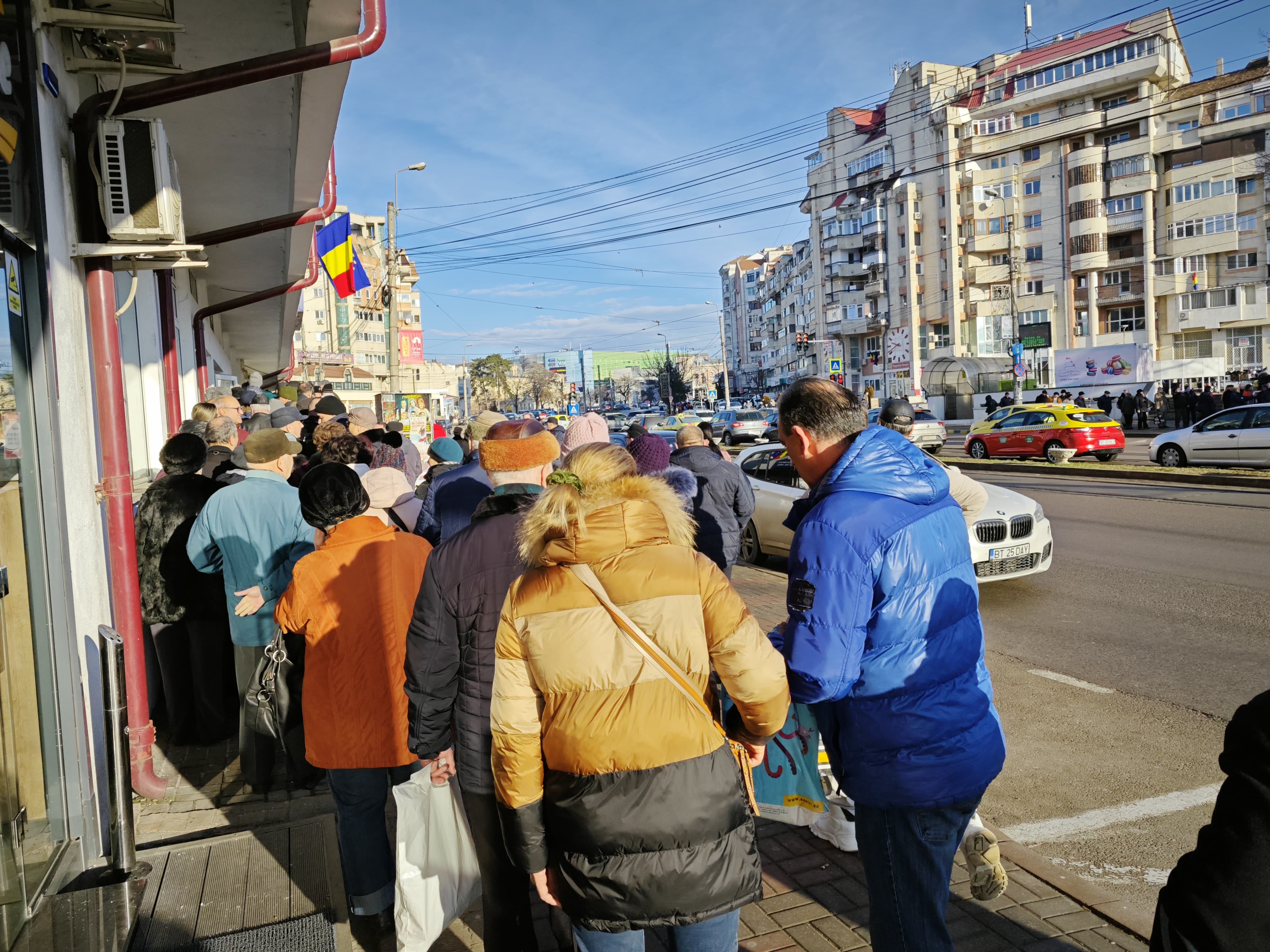 Vremea este deosebit de caldă pentru această perioadă, iar oamenii așteaptă liniștiți să le vină rândul.
